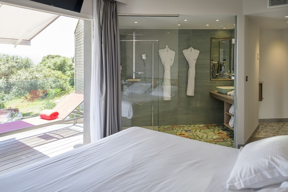 Un accueil sympathique, une chambre confortable et une vue agréable sur le port de Porto pollo. Remerciements pour les cocktails en chambre et le petit déjeuner anticipé !