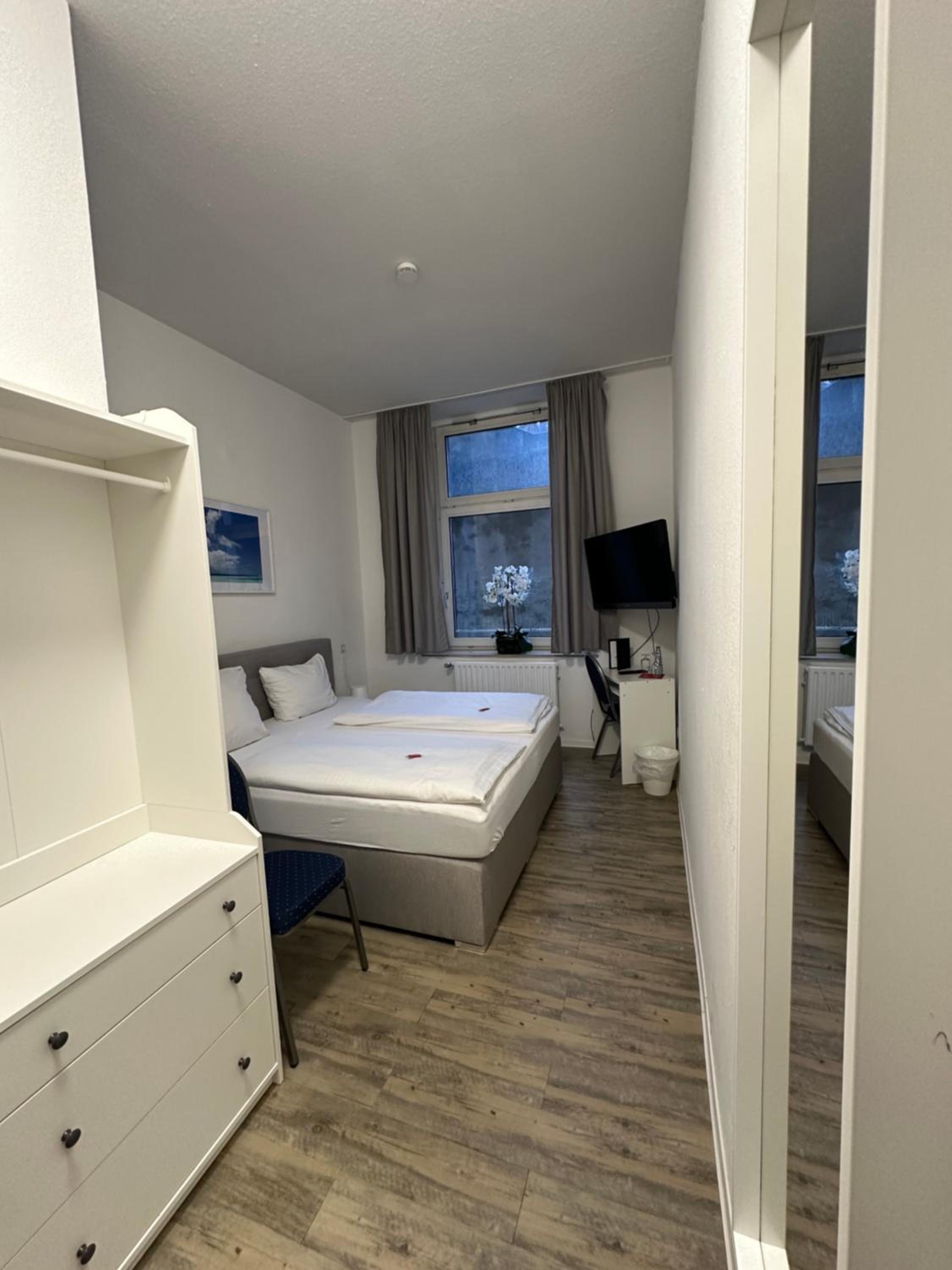 Zimmer zu klein, selbst für eine sehr schlanke Person. Matratze zu weich.