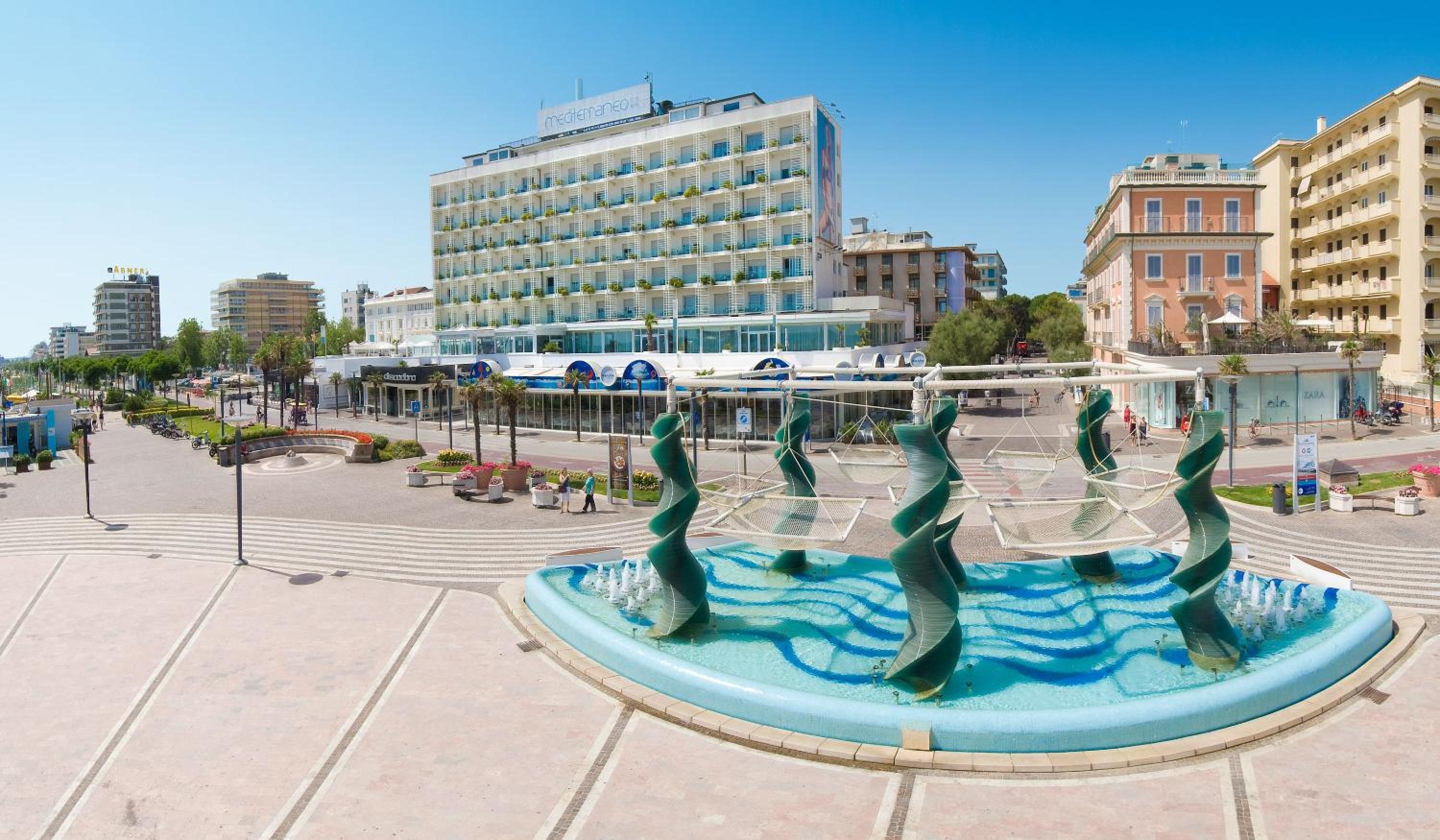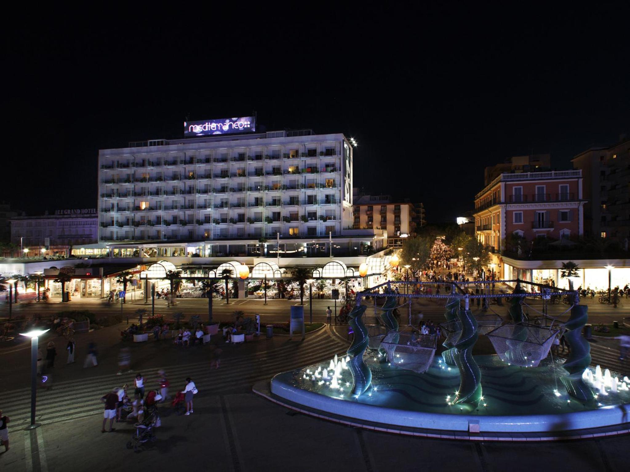 Hotel Mediterraneo - Cenone di San Silvestro is situated in Riccione's trendiest area, boasting a prime seafront location. Enjoy the outdoor pool and stylish rooms with modern amenities.