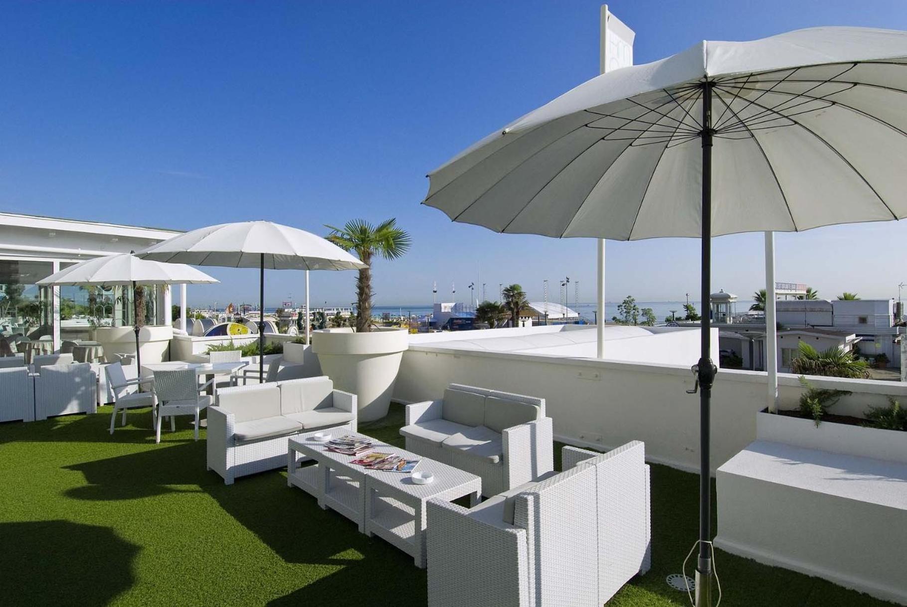 Indulge in exquisite dining options at the hotel's two restaurants, offering a buffet spread and exclusive sea views. With proximity to popular nightclubs, experience Riccione's vibrant nightlife just steps away.