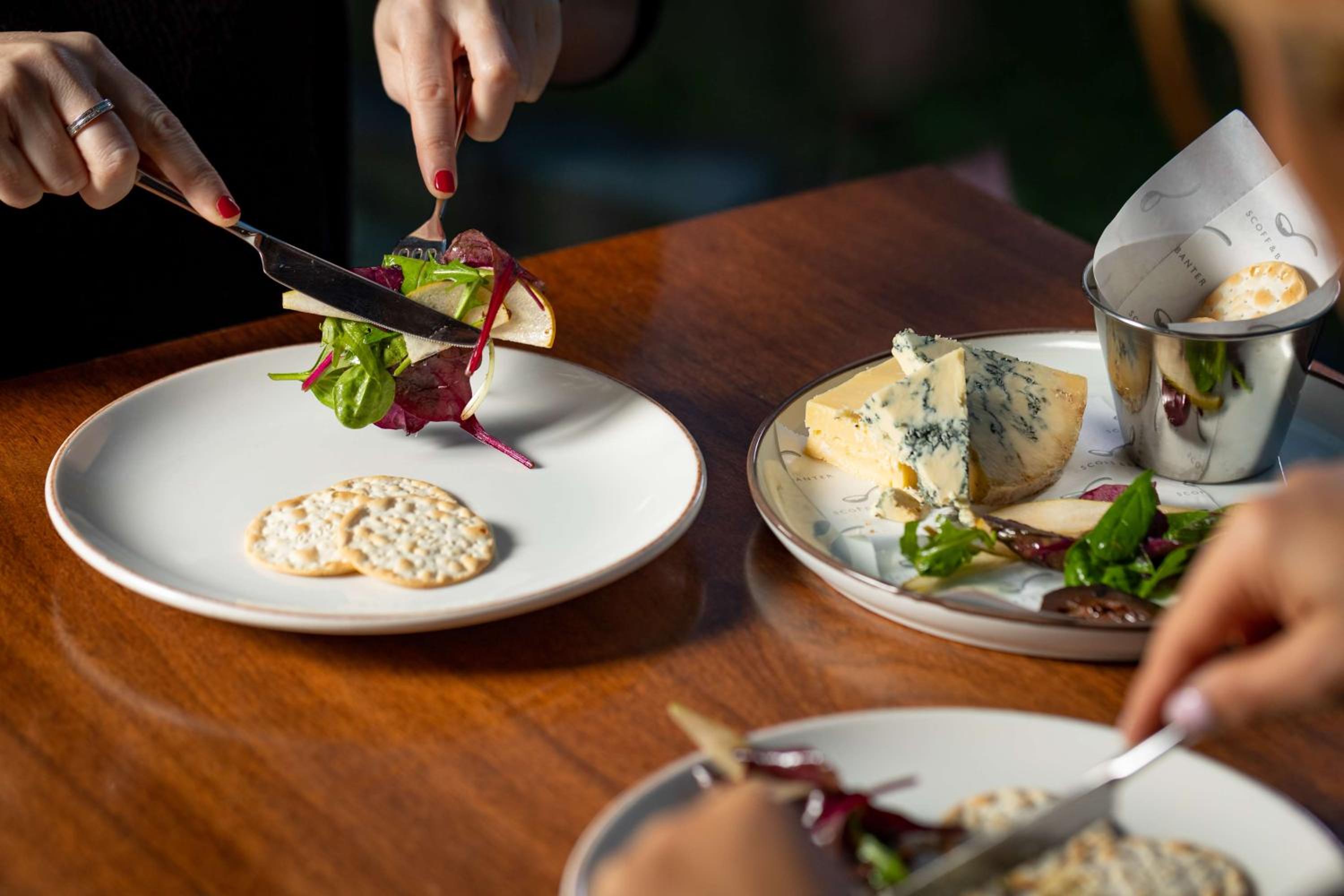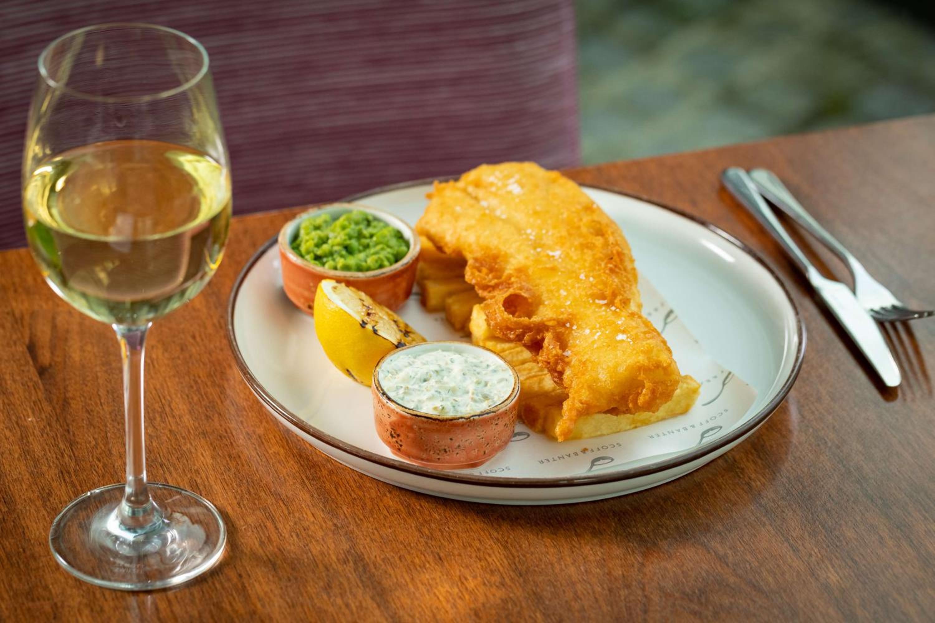Savor Modern European cuisine at Scoff and Banter Canary Wharf, offering river views, a stylish bar, and a terrace for a memorable dining experience.