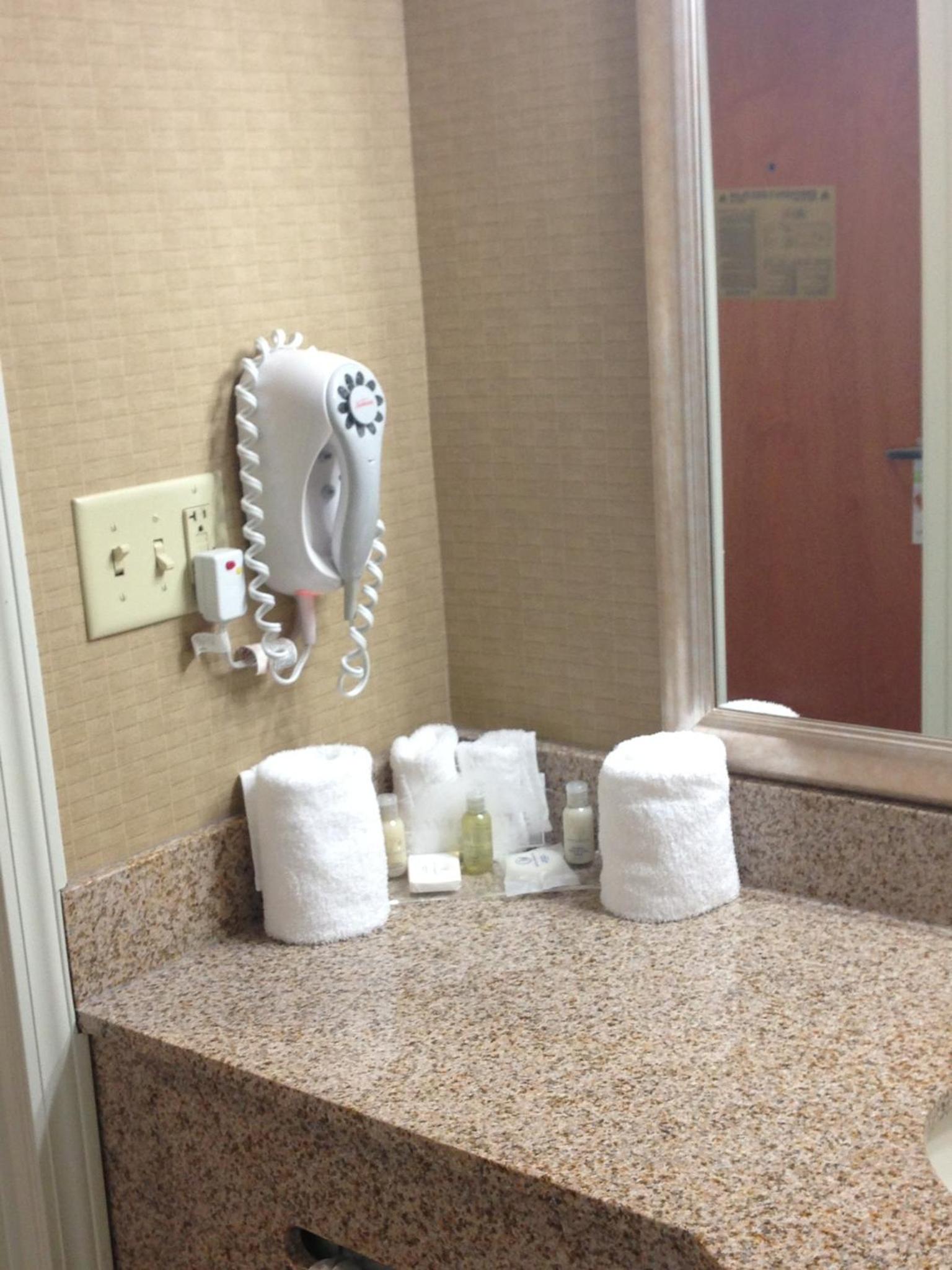 Our brother had a stroke and rehab location is nearby, but not as close as we thought. The bathroom was dingy, had a Very rusted light, caulking around tub bad, just not shiny clean at all.
