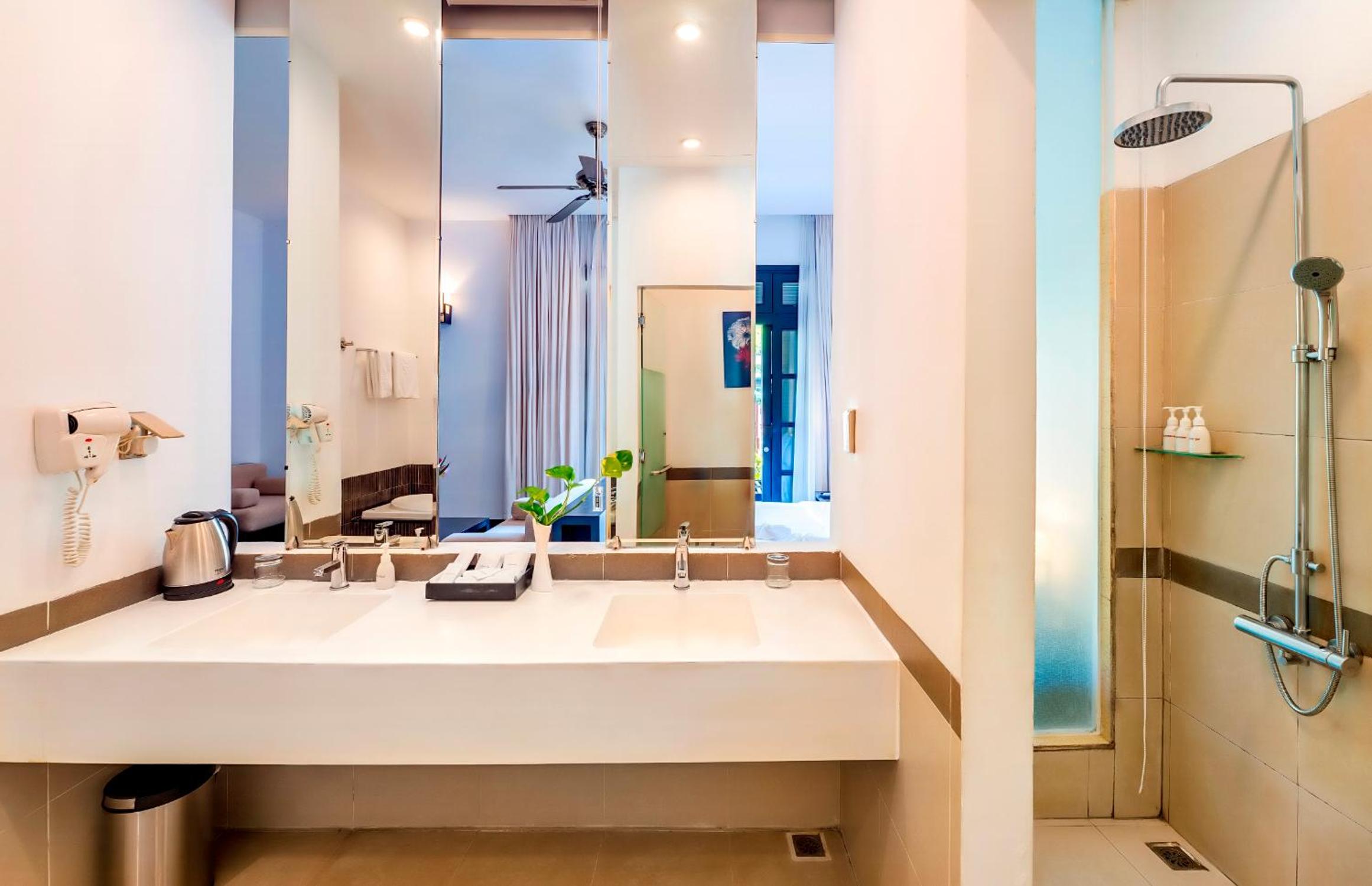 HOI AN HISTORIC HOTEL offers elegantly designed air-conditioned rooms with free WiFi, ensuring a comfortable stay for guests. Rooms feature modern amenities such as a flat-screen TV, safety deposit box, and private bathroom with free toiletries. Some rooms even boast balconies and city views, adding a touch of luxury to your experience.