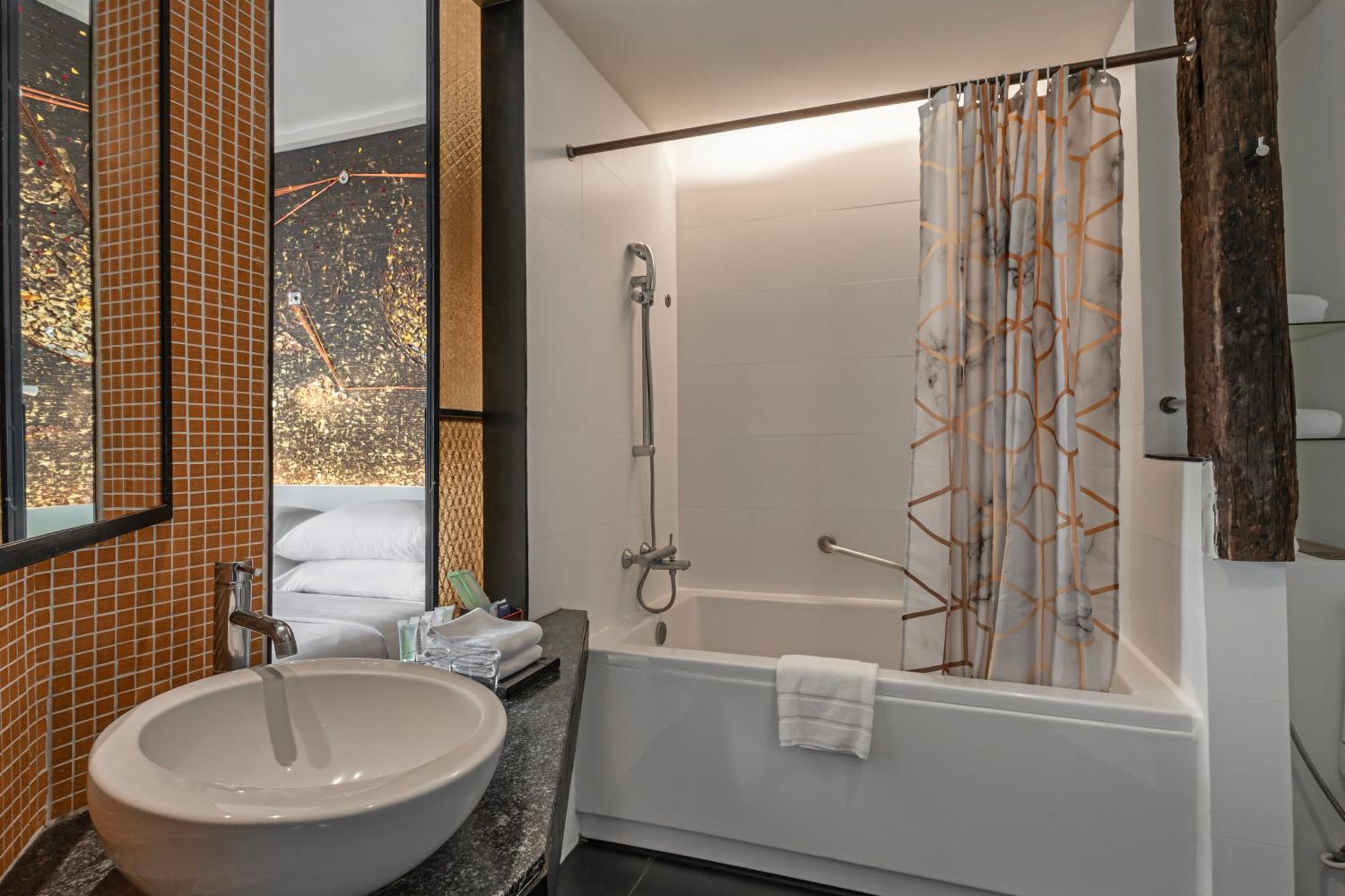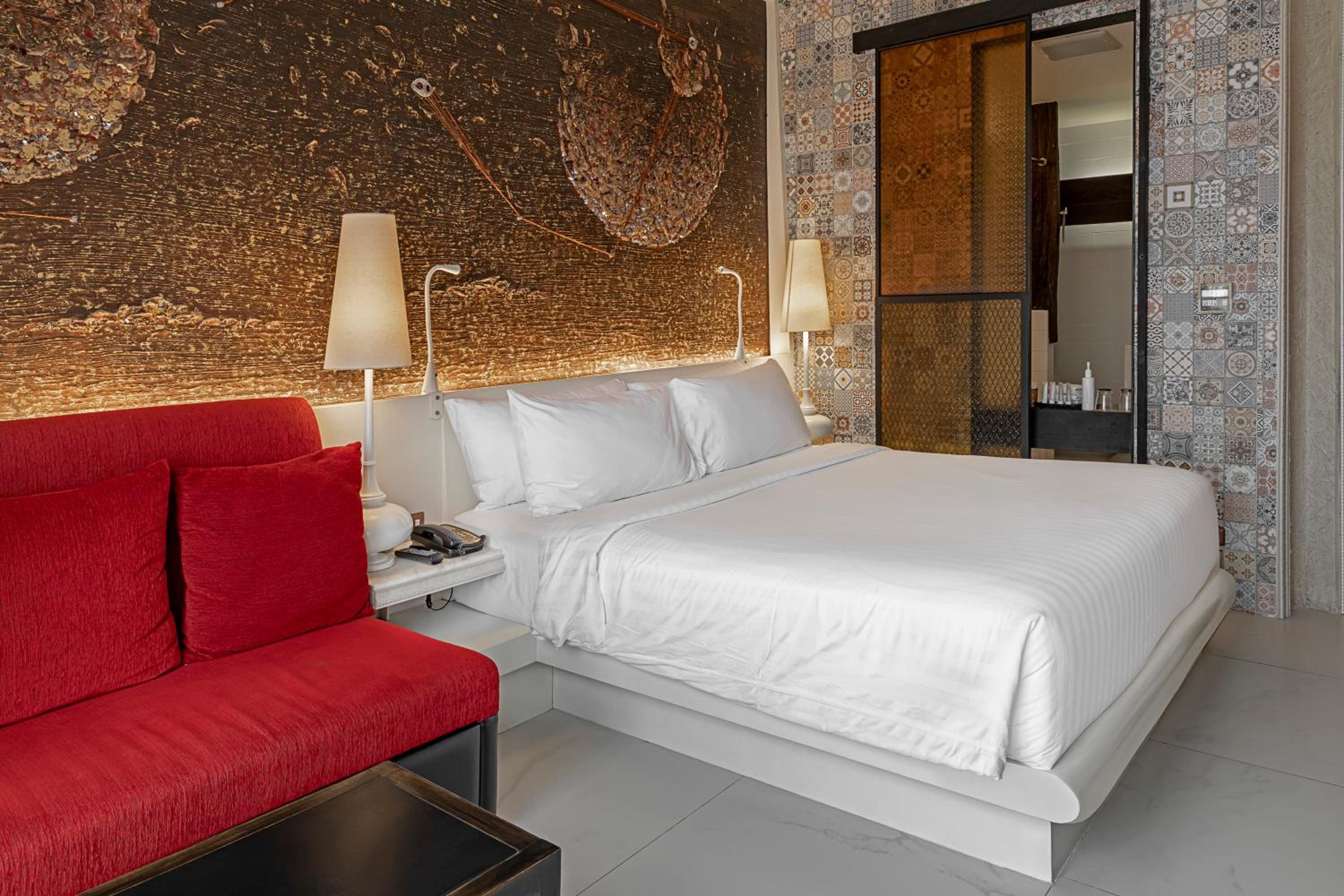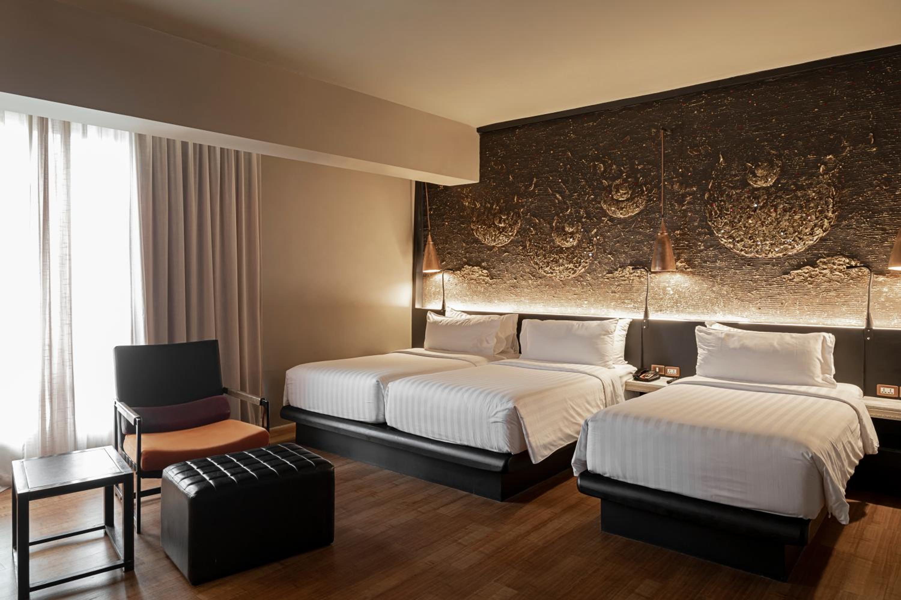 Experience the vibrant city of Bangkok in style at Siam @ Siam, Design Hotel. Admire the stunning cityscape from our infinity pool and enjoy the chic and modern décor throughout the property.