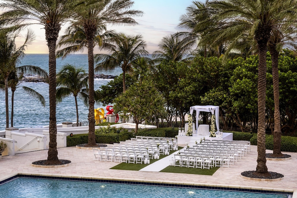 Hotel triggered fraud protection on my Chase Sapphire Preferred card. Instead of contacting me they just locked me out of my prepaid room. I felt like a criminal. Their beach is useless and covered with seaweed. They are happy to charge $300 for a day bed but cant be bothered to rake the seaweed and trash out of the beach sand like real luxury hotels do. Also they had the audacity to add a "gratuity" charge of 74$ to my minibar. Its like paying a tip to a vending machine. I think im going to avoid all marriot properties from now on. They are all acting in a consistently anti customer way.