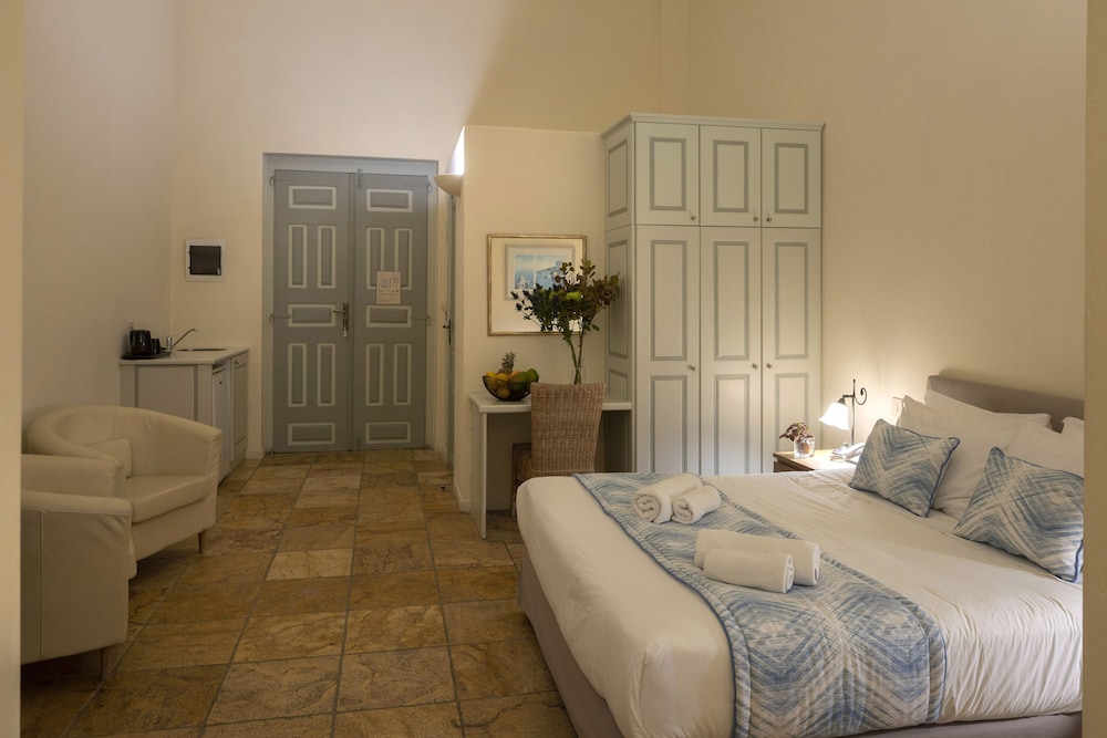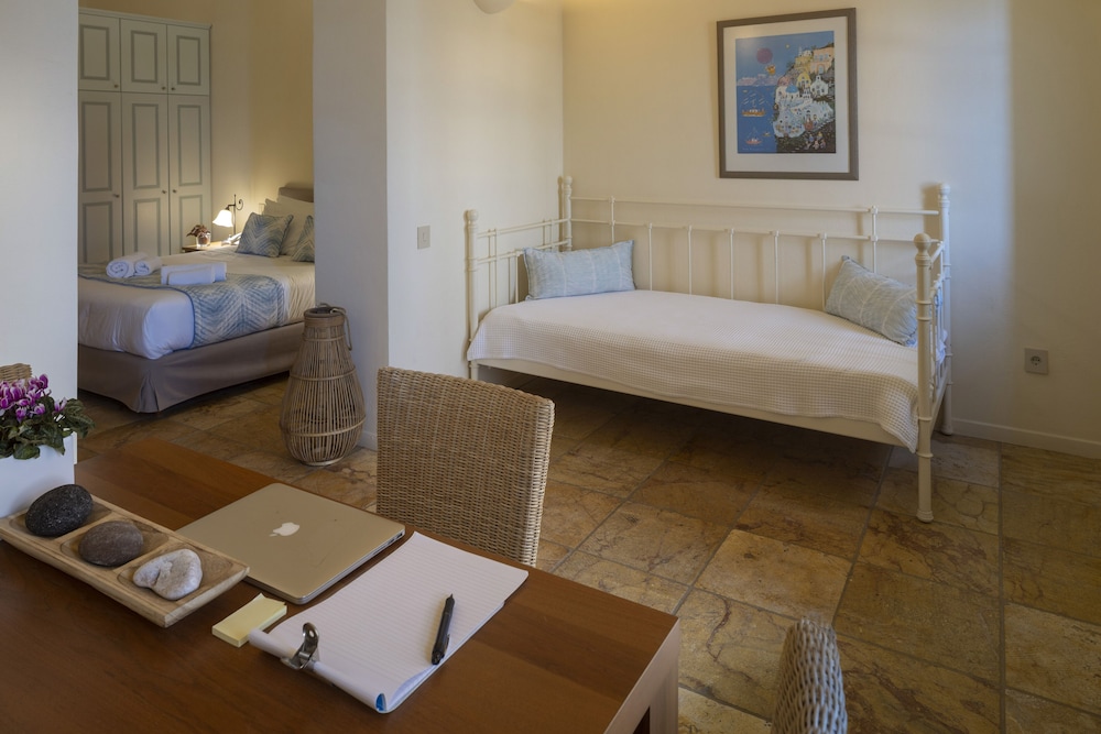 We absolutely loved our 2 day stay at Aria Lito Mansion and wished we could have stayed longer. The hotel is located near the church tower in Fira and is connected to the beautiful narrow streets. Beautiful room - large and had high ceilings and windows.