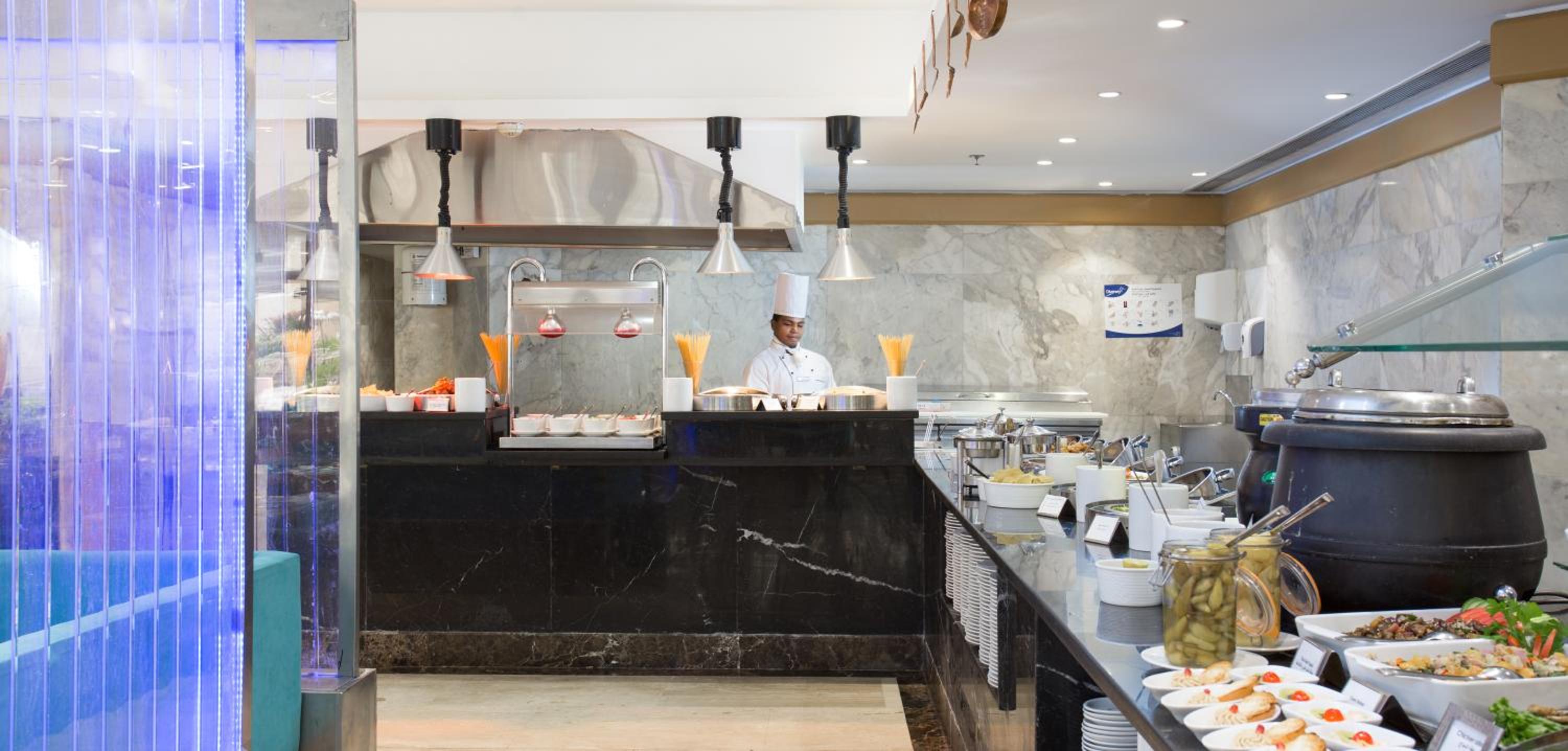 Everything was smooth from the moment I stepped in the hotel. Beautiful and clean . Very comfortable rooms and good service . I had dinner in the buffet and was delicious .