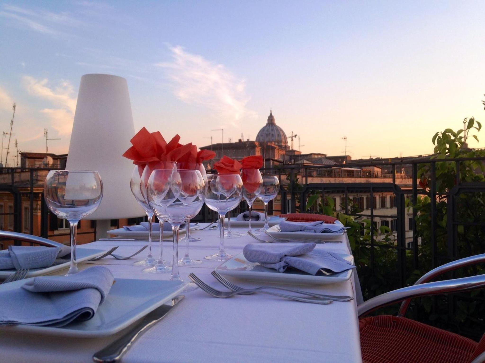 On the rooftop terrace you can relax in the hot tub, enjoy a drink from the bar, and dine at the traditional restaurant. A hot and cold buffet breakfast is available daily, along with a selection of Italian coffee.