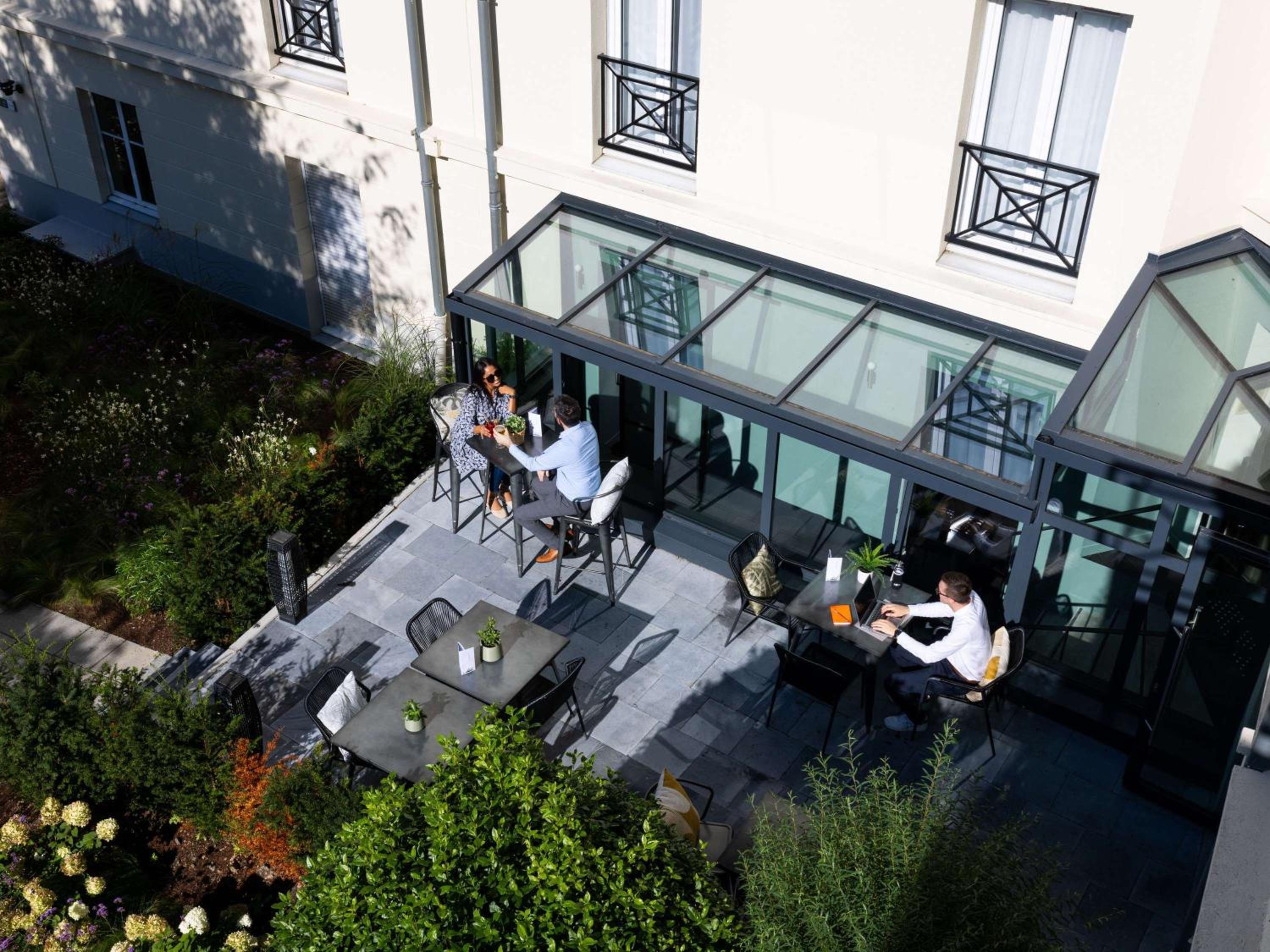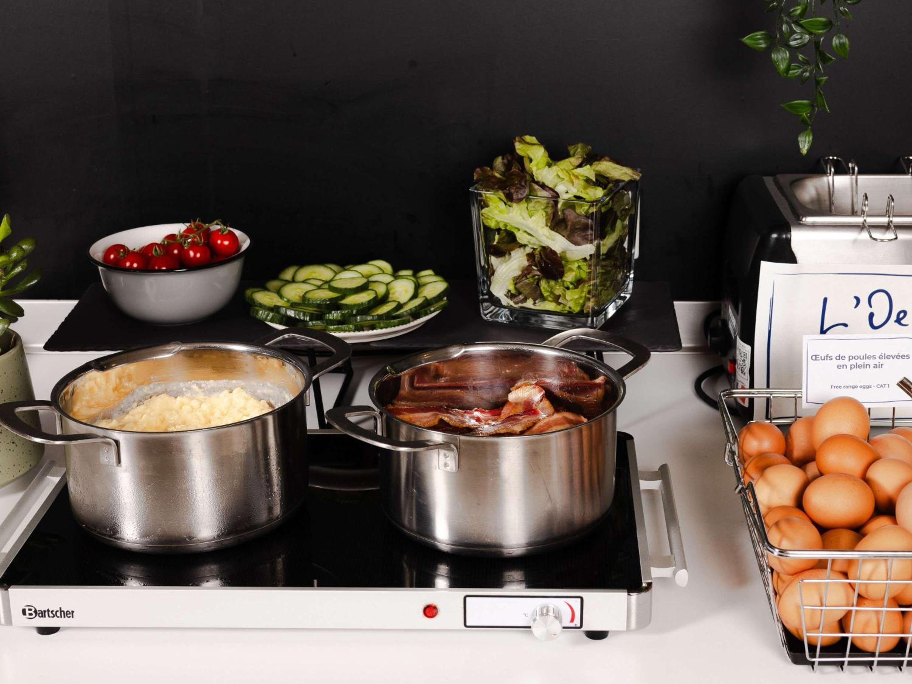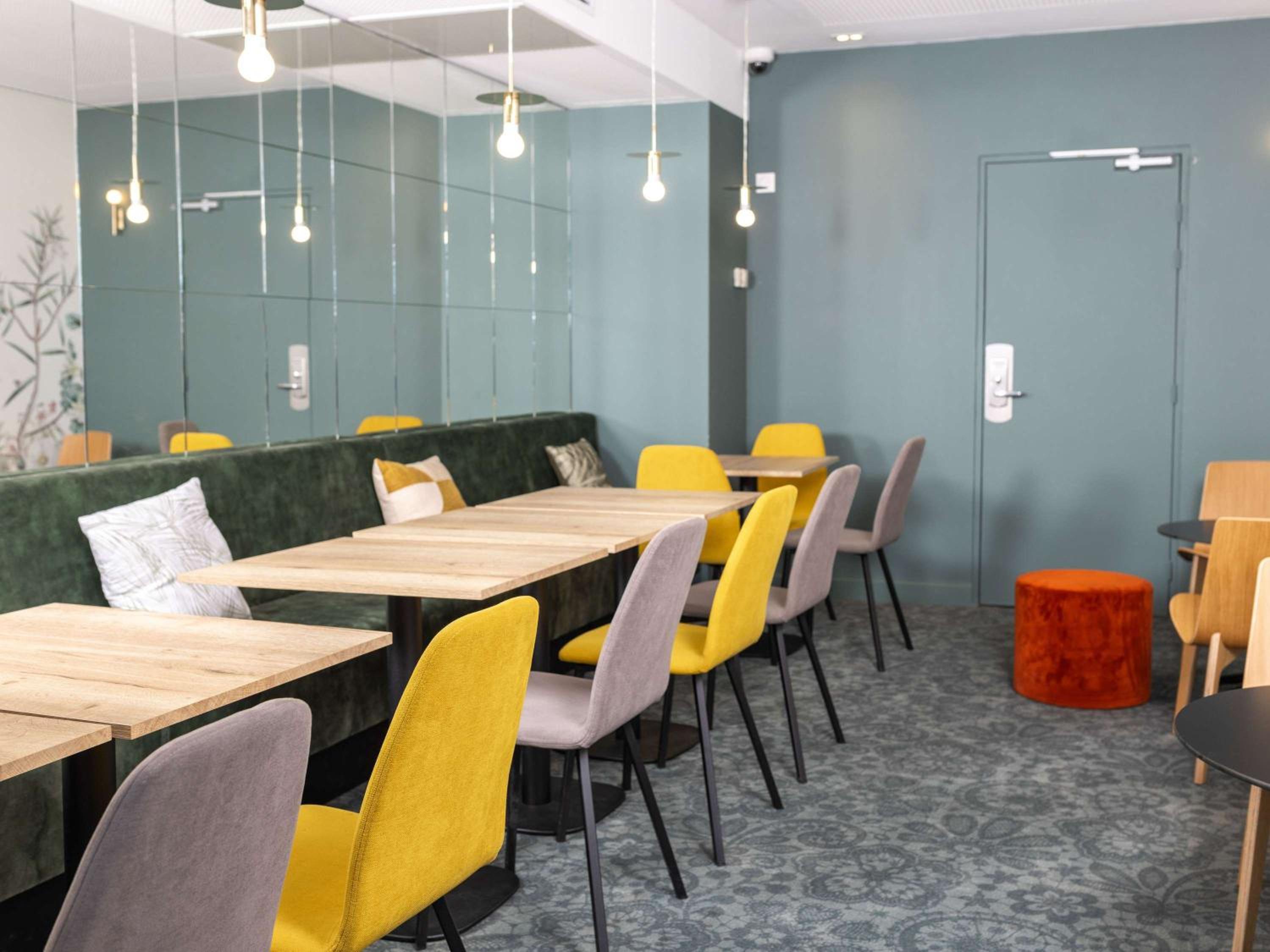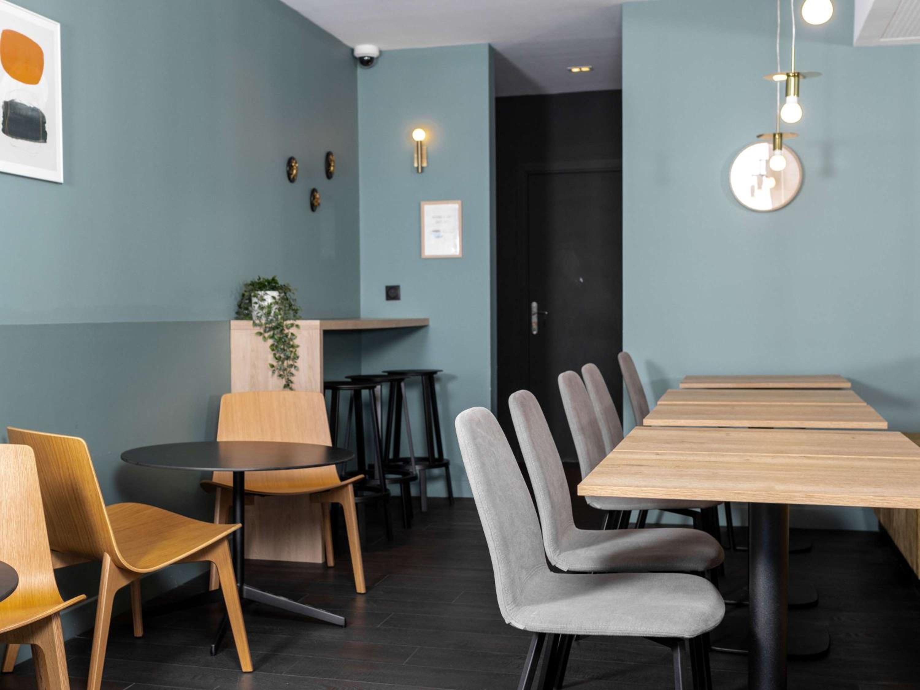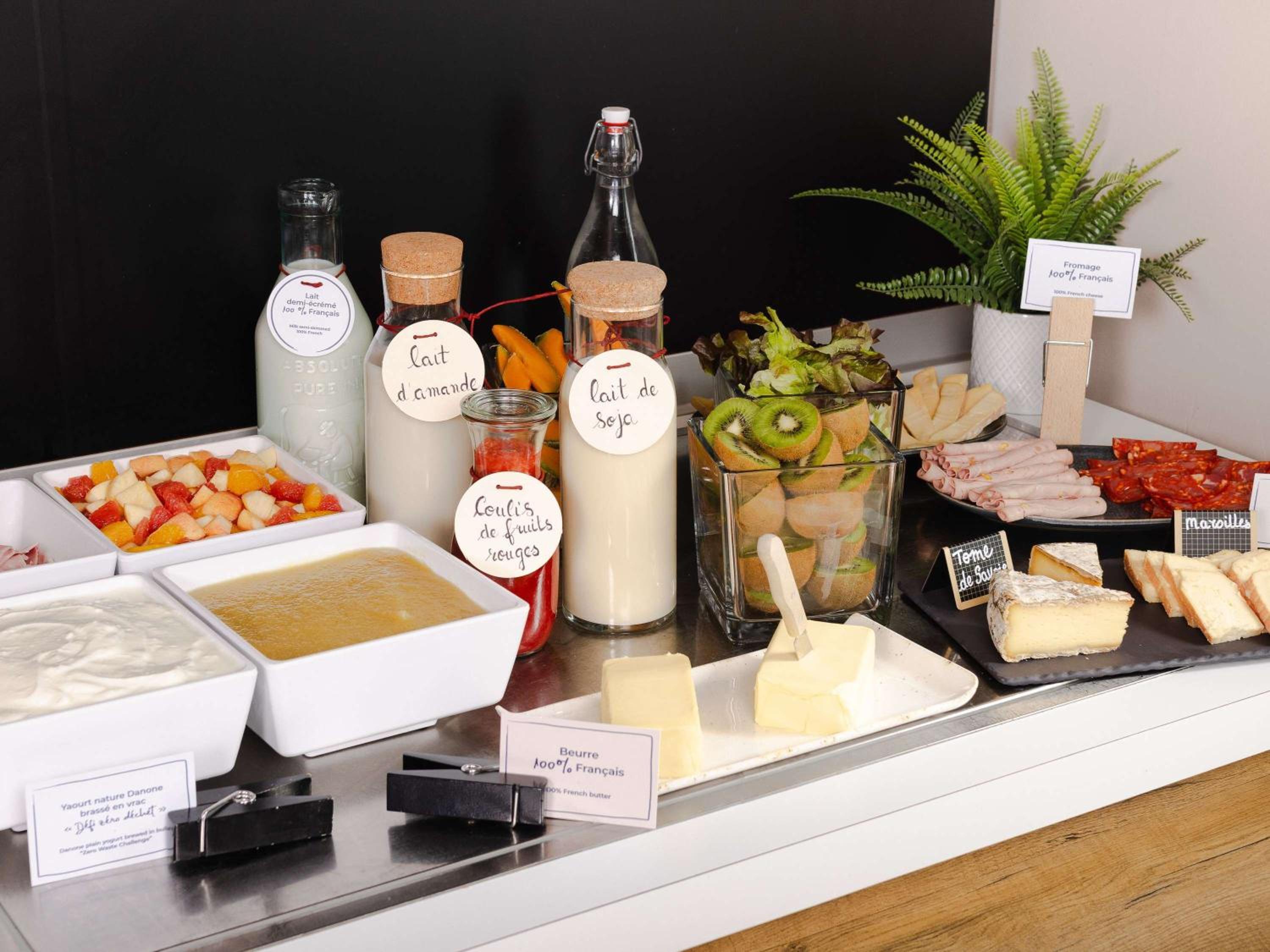 Guests can enjoy a buffet breakfast with a variety of sweet and savoury dishes, including freshly baked pastries and French Madeleine cakes. The bar serves snacks, and guests can also opt for a lighter breakfast option outside regular hours.