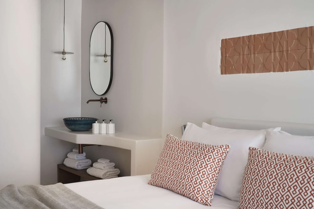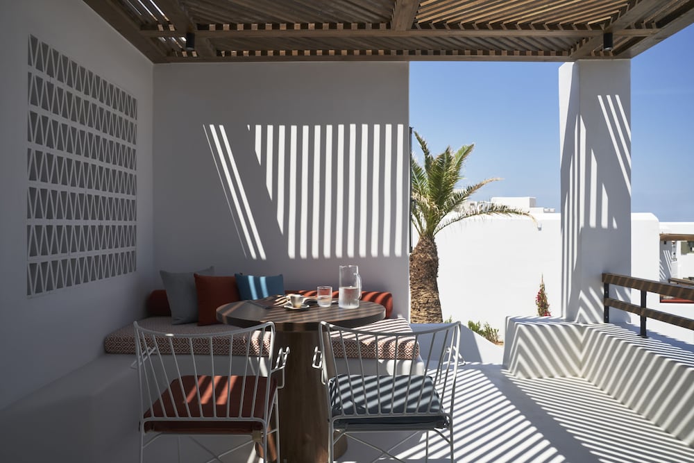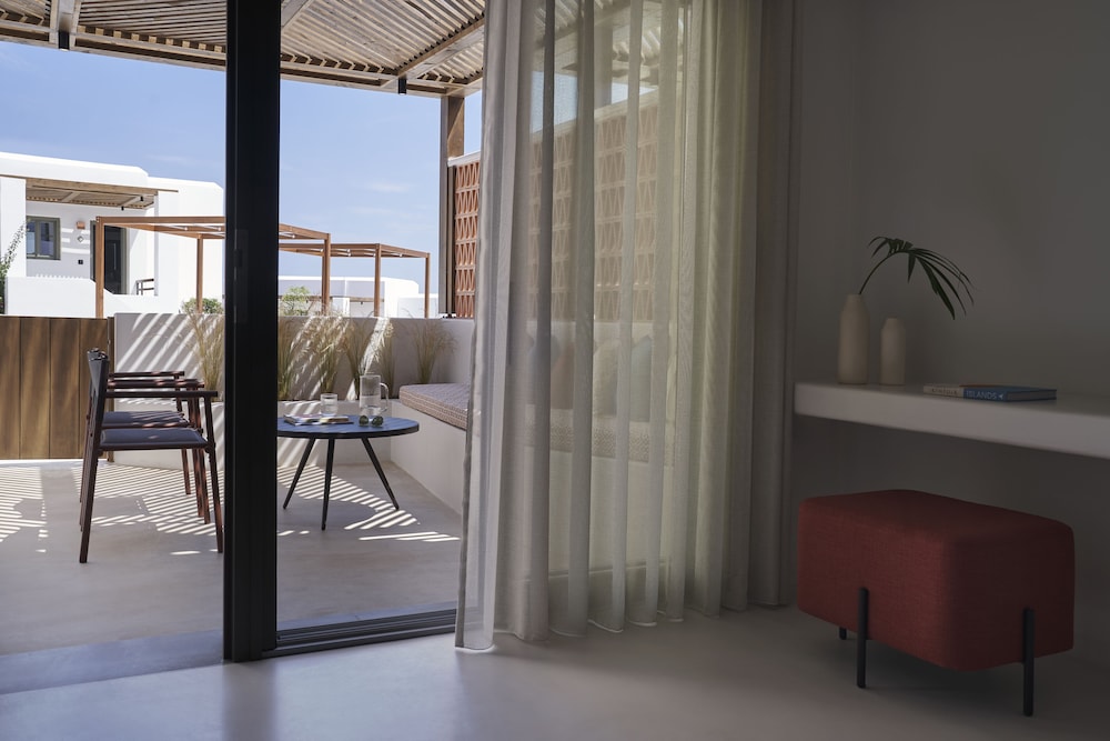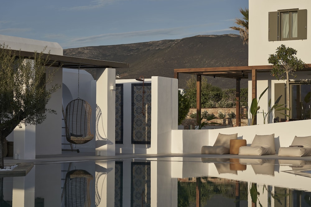 We cannot say enough about this property. We arrived with a last minute reservation ( the hotel we had originally booked was not as nice as it looked online and the staff was rude) and were greeted by friendly and professional staff. The property Is gorgeous. It’s about a 20 minute ride to Naoussa in the complementary shuttle. Our rooms were beautiful and modern. They were serviced 2 times a day and we lacked nothing. Our breakfast was included and served on a terrace overlooking the Aegean Sea. Stunning views. Best way to start your day in Paros. We absolutely loved this hotel and cannot wait to come back. Thank you Artemis and Zeta for all your help with transport and reservations. See you next time!