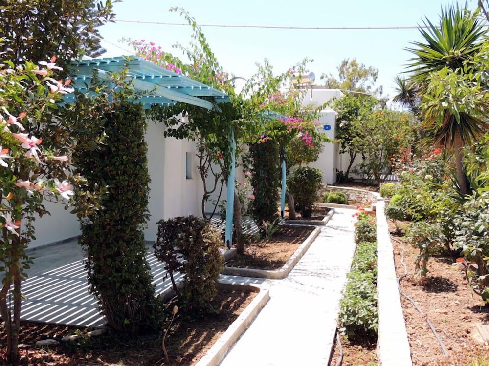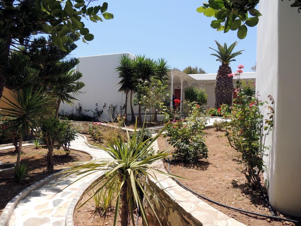Property is set up like a quaint little village, short walk to the beach, close bus stop for trips to Naousa. Very friendly and helpful staff. Loved the room! Loved the experience with the staff! Pool is great! Would definitely f recommend for an “off the beaten path” experience- they have everything you need and easy access to other areas of the island.