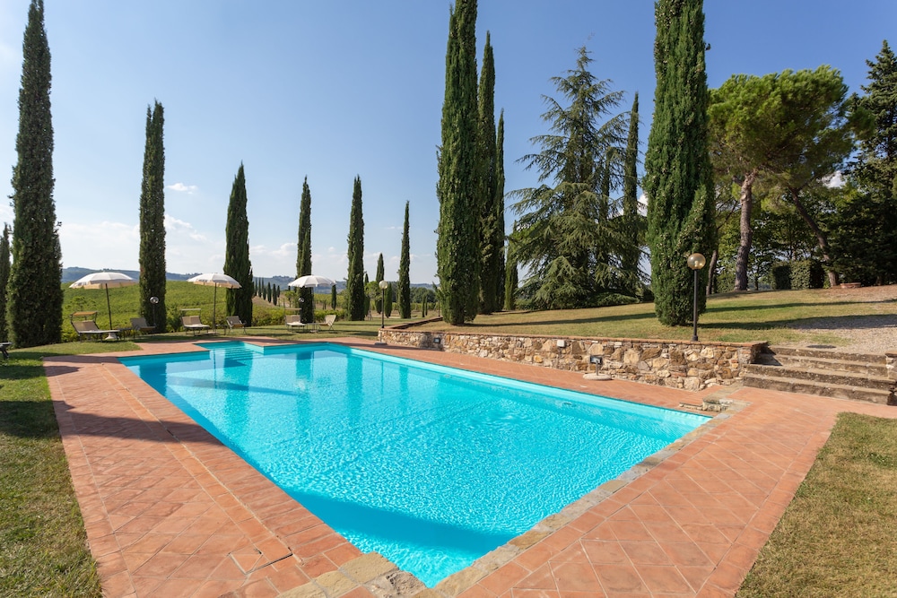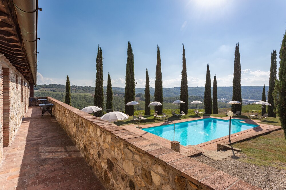 Beautiful and have amazing views of Tuscany! They have 2 nice pools and the management is nice but sometimes hard to find. We had a 3 room apt. With kitchen (not that well equipped). It came with an outside table and chairs to have meals with a VIEW. The location is great to visit Tuscany but you need a car. it is halfway between Sienna and Florence and close to San Gemignano and other nice Tuscan towns.