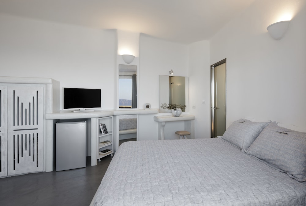 We arrived early in the morning and were grateful we had arranged the hotel shuttle in advance—highly recommended if you’re not renting a car. The drive from the airport was brief, just 10 to 15 minutes, and cost under 25 euros. From the moment we walked through the doors, the warmth of the front desk staff stood out. Andriana, in particular, was incredibly kind and managed to have our room ready by 12:45 p.m.—a gesture we truly appreciated after arriving around 9 a.m. While we waited, we enjoyed breakfast with a stunning view, and spent time in the lobby, it was remarkable to watch how gracefully the front desk team handled each guest’s needs, always with a smile. Their hospitality was genuinely unmatched. Our suite was clean, quiet, and comfortable. In the afternoons, music from the pool area filtered up to our room, sometimes accompanied by a live DJ. While it added to the vibrant atmosphere, it may be something to consider for those traveling with small children or seeking total silence. The pool was pristine and lively in the afternoons, offering a relaxed yet energetic vibe. Transportation around the island was easy to arrange, and the hotel’s drivers were courteous and helpful. That said, because the property is perched on a cliff, rides can become expensive. Thankfully, there’s a convenient bus stop right in front of the hotel. Will stay here again for the breathtaking sunsets!