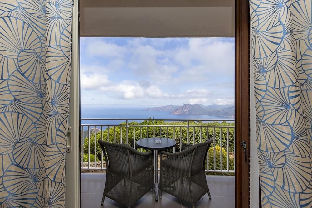 Vue incroyable de la chambre sur les calanques. Chambre très petite. Climatisation insuffisante.