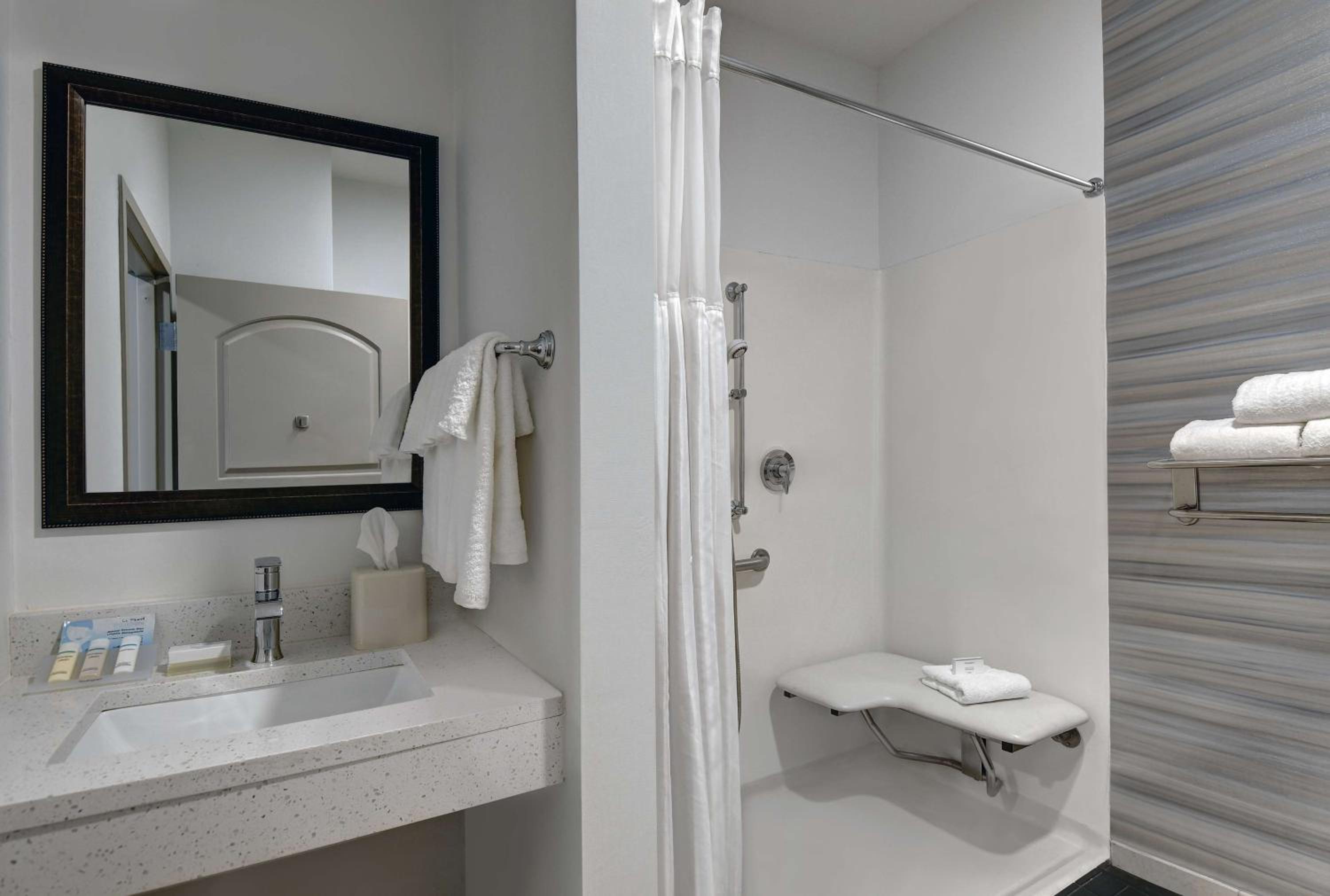 Outdoor decor and design welcoming and inviting. Inside lobby area as well. Handicap room was spacious and set up well. They were able to accomodate an early check in early.