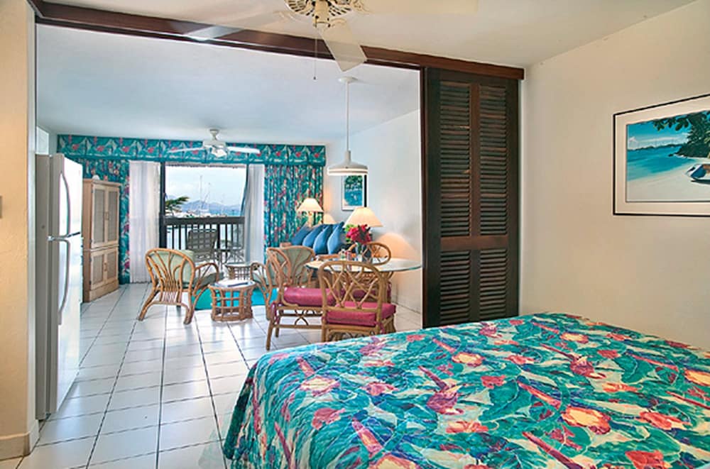 Interestingly the photo of the pool on Trip Advisor is old! Quite old! The hut near the pool has been updated. But let's get to the condo. We stayed in D Building in a condo called Sea Worthy. These condos are privately owned. Ours was very tastefully decorated in a modern beach vibe. The kitchen was well equipped for making almost everything. The King bed was very comfortable. The updated bathroom had double sinks and a roomy shower. Our balcony had a high-top table and chairs so your view of St. John and the BVI's was right there in your face! And it is breathtaking! Nearby is the pool, a beach bar, coffee shop, pizza bar, and upscale restaurant. Five minute drive to Red Hook. Check in, lay back, and relax!