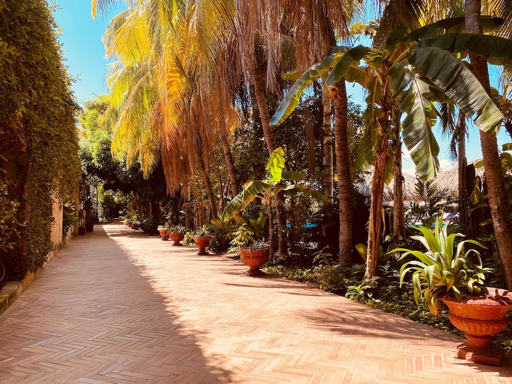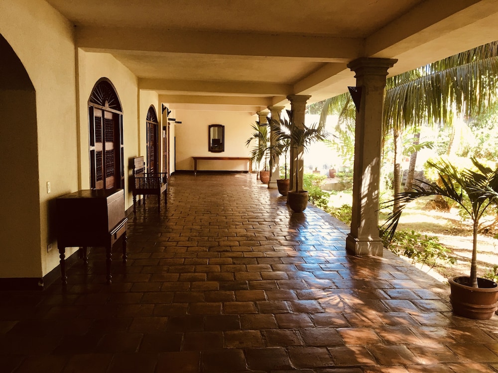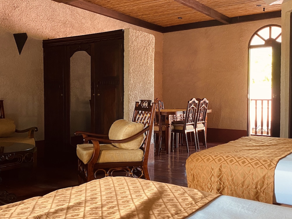 While the front entry of the hotel is somewhat demure, the hotel gets more impressive with each step you take, going fr one grand area to another. This is an old fort/castle that has large rooms with lots of aged mahogany & other local hardwood, stone & brick. Really impressive! The staff was equally impressive with their attentive attitude and exceptional service. I think the pool area is the largest in Granada, with sparkling water, surrounded by comfortable lounge chairs under lots of tiki thatch umbrellas.There is also a chapel with huge arched thick wooden doors.There are multiple rooms for various size gatherings, like weddings(the photo opportunities will make you think you have traveled back in time to the 1800's)The bedroom & bathroom are a nice size, clean & came with an antique beautiful Ropero (Wardrobe). My wife and I stayed in a Deluxe room, that came with double queen beds, dinning room table for six, and a living room that seats eight, plus a safe. The dining room had a fridge, and the air conditioning worked just great! The double balcony had amazing views of Mombacho Volcan surrounded by and its gorgeous nature. I really had nothing to say, but great things about this resort, before I made the reservations I went on line to research about the best resorts in Granada, I chose 4 including this one, then I sent my nephew who lives in Managua to personally go and check all the resorts and send me pictures,The only hotel that match their website was this one!