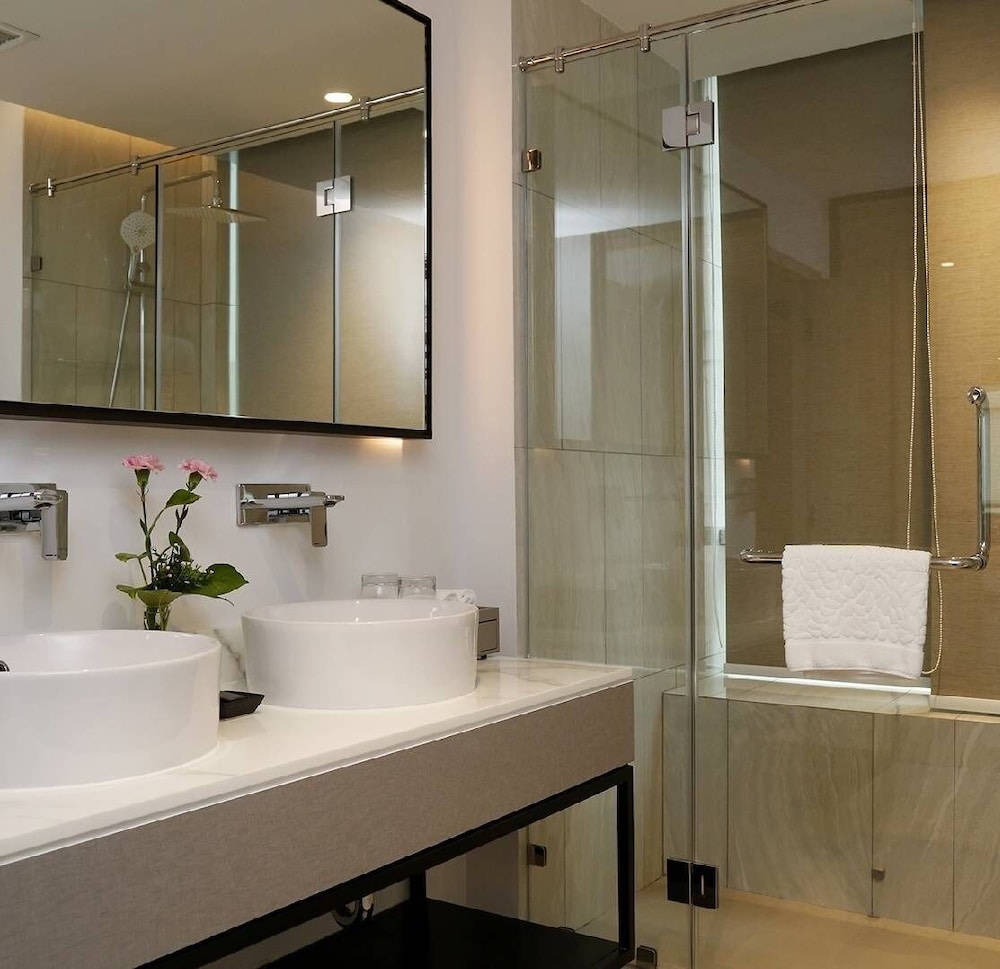 Excellent rooms, plenty of light, cleverly designed, almost perfect, if not for the window blinds in the shower, which do deteriorate with moisture. I love the little round table, much better for working than regular desks. Hotel location is only good for activities in that part of Bangkok - mist likely business. Not for tourists, although it does cater for them, particularly a loud crowd from a certain mainland country. Nothing outside, except for a 7eleven, for which one must cross 2 railway tracks, 6 roads (16 lanes) and 2 canals. Unfortunately the hotel does not have shuttles or a standing line of premium taxis.