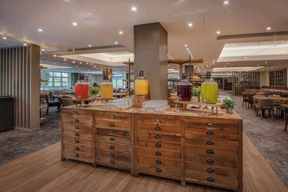 The hotel is too spread out. Despite requesting rooms close to each other our party was given two rooms at opposite ends on the building. My room was very warm and as it only had french doors which opened to the car park, I was unable to ventilate. The pork dish in the restaurant is extremely expensive for the portion size (the accompanying vegetables equated to approximately a tablespoon). Having stayed in other De Vere hotels this one did not live up to previous experience.