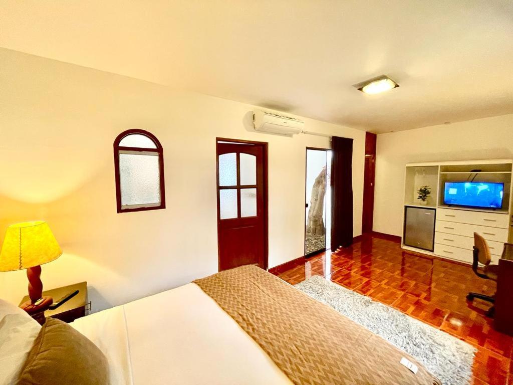 Entramos a las 21:00 al alojamiento y nos recibió Carlos, pero no me gustó en lo personal, que por llevarnos a la habitación con la maleta, nos haya pedido propina ya que yo pienso que esto depende de la atención y amabilidad de la persona, ya que también al día siguiente al retirarnos se encontraban 2 señoritas en recepción y fueron muy apáticas y no nos sentimos cómodos y que fuéramos huéspedes.