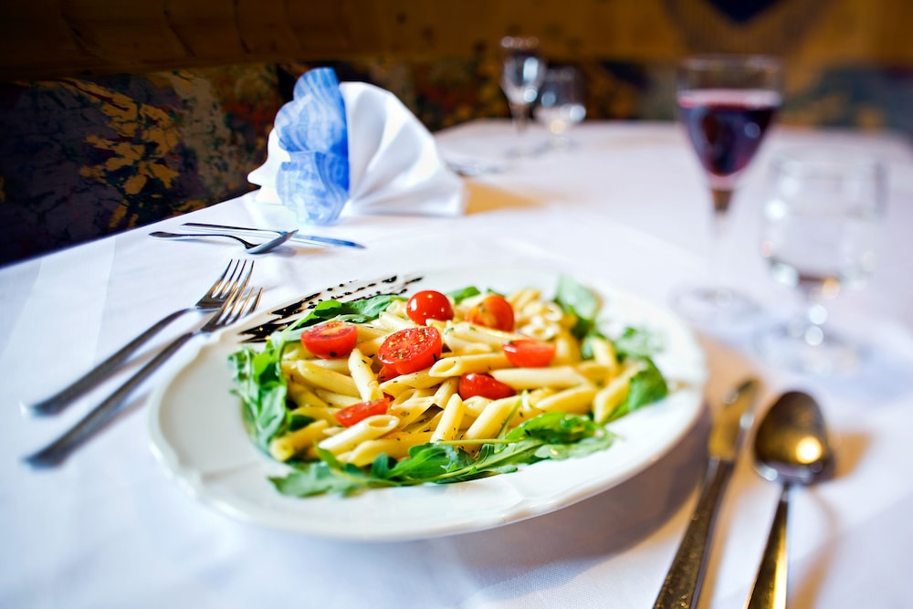 Indulge in local cuisine at Ustaria Posta's restaurant or grab a quick bite at the cafe. Enjoy daily buffet breakfast and numerous amenities, including complimentary Wi-Fi, ski storage, and on-site shopping.