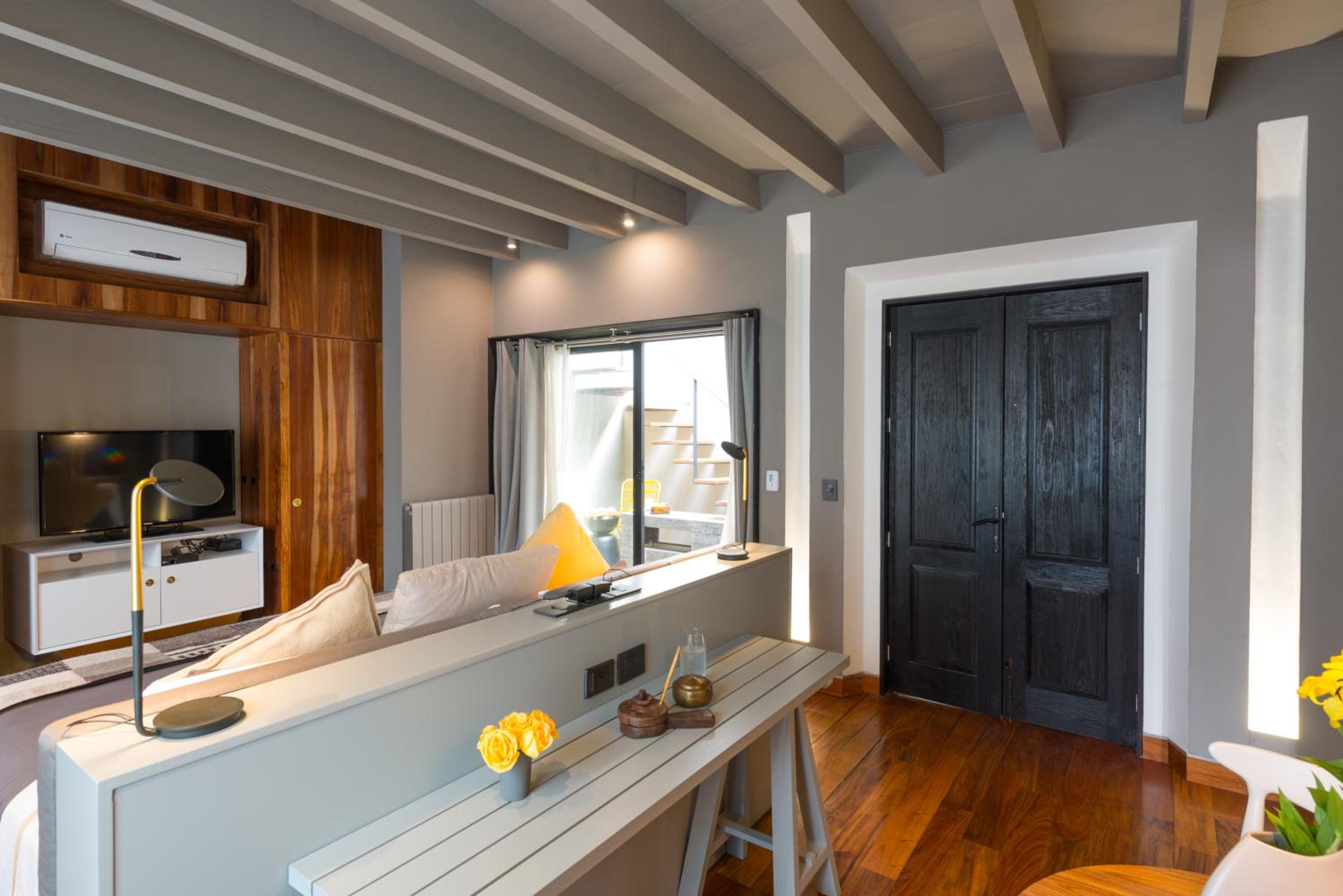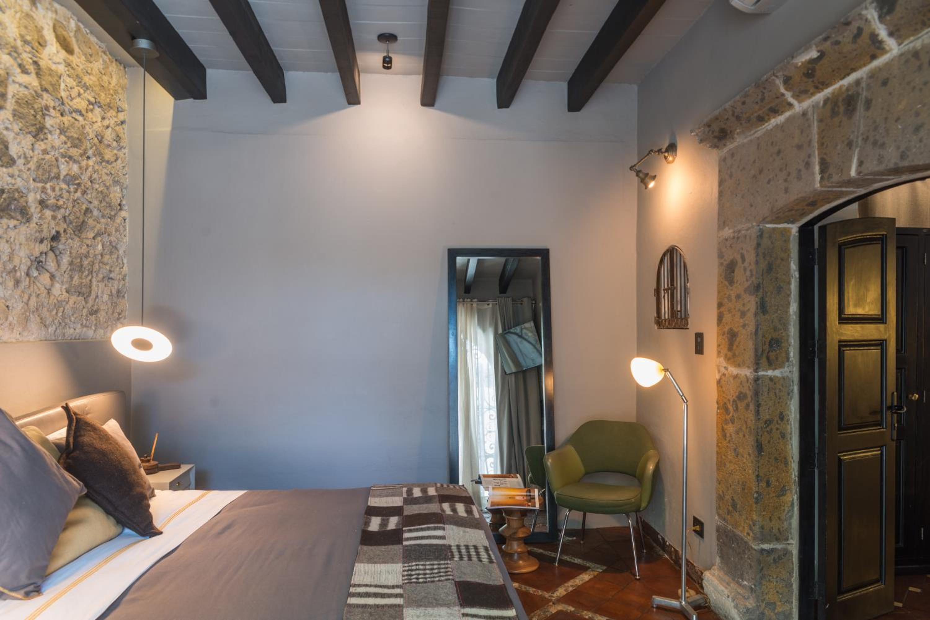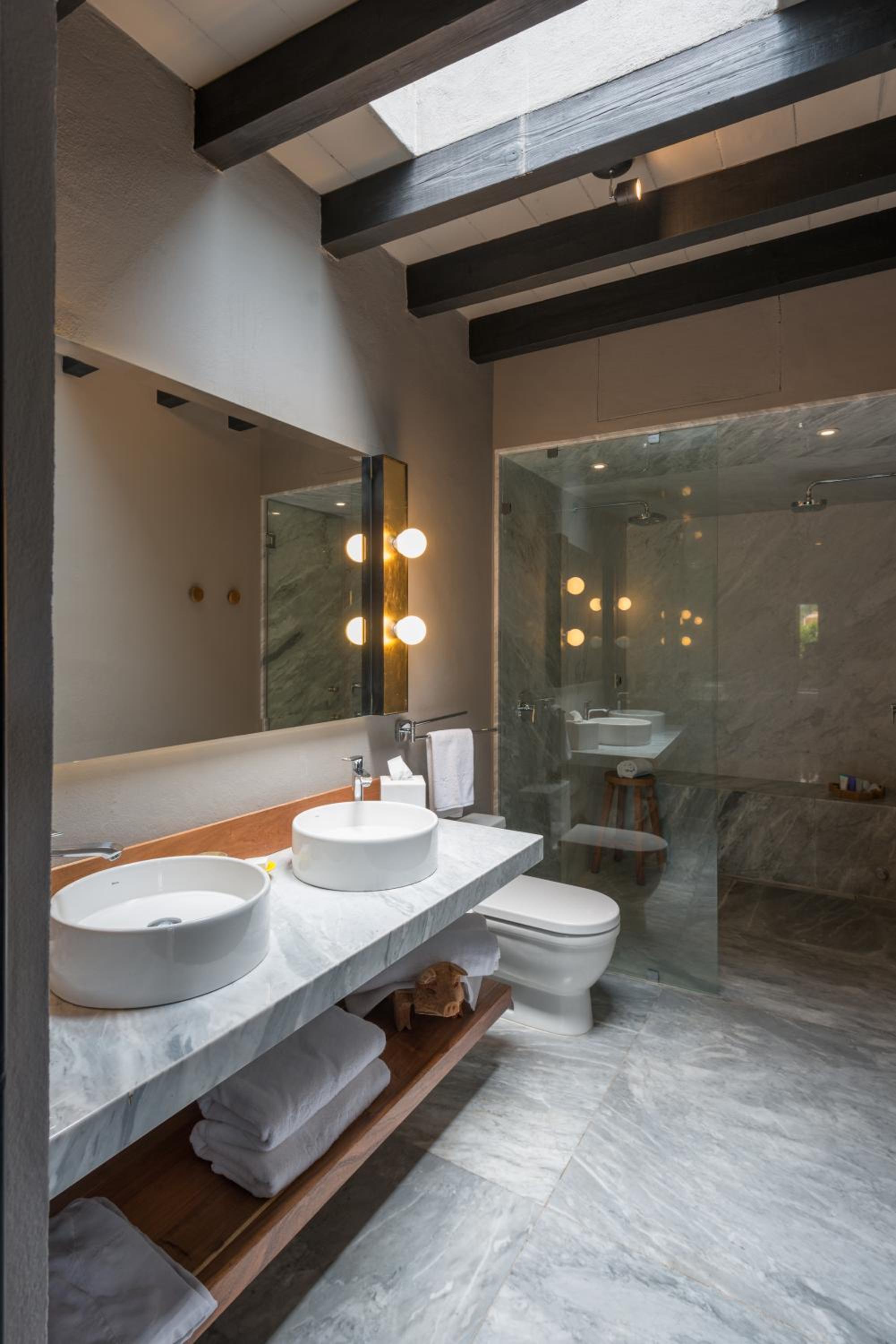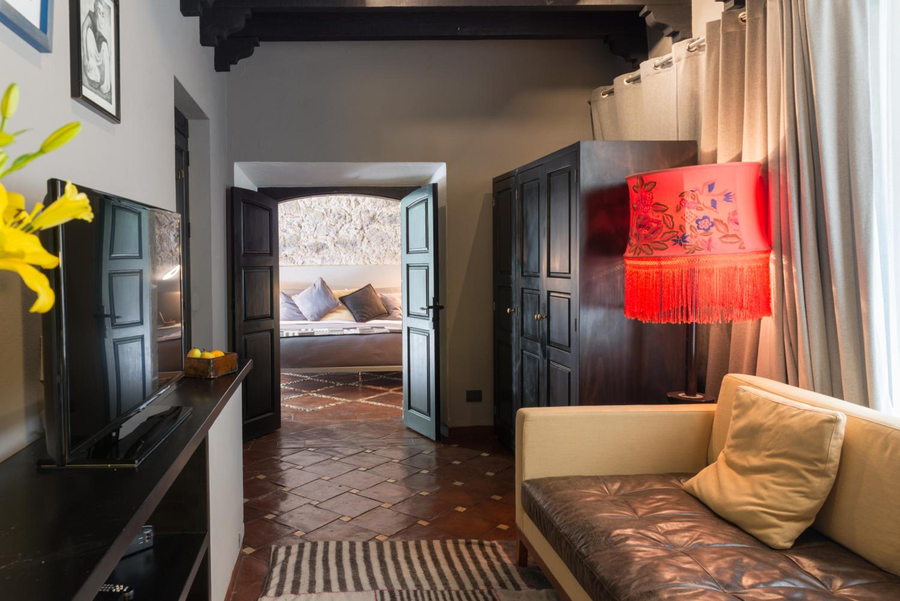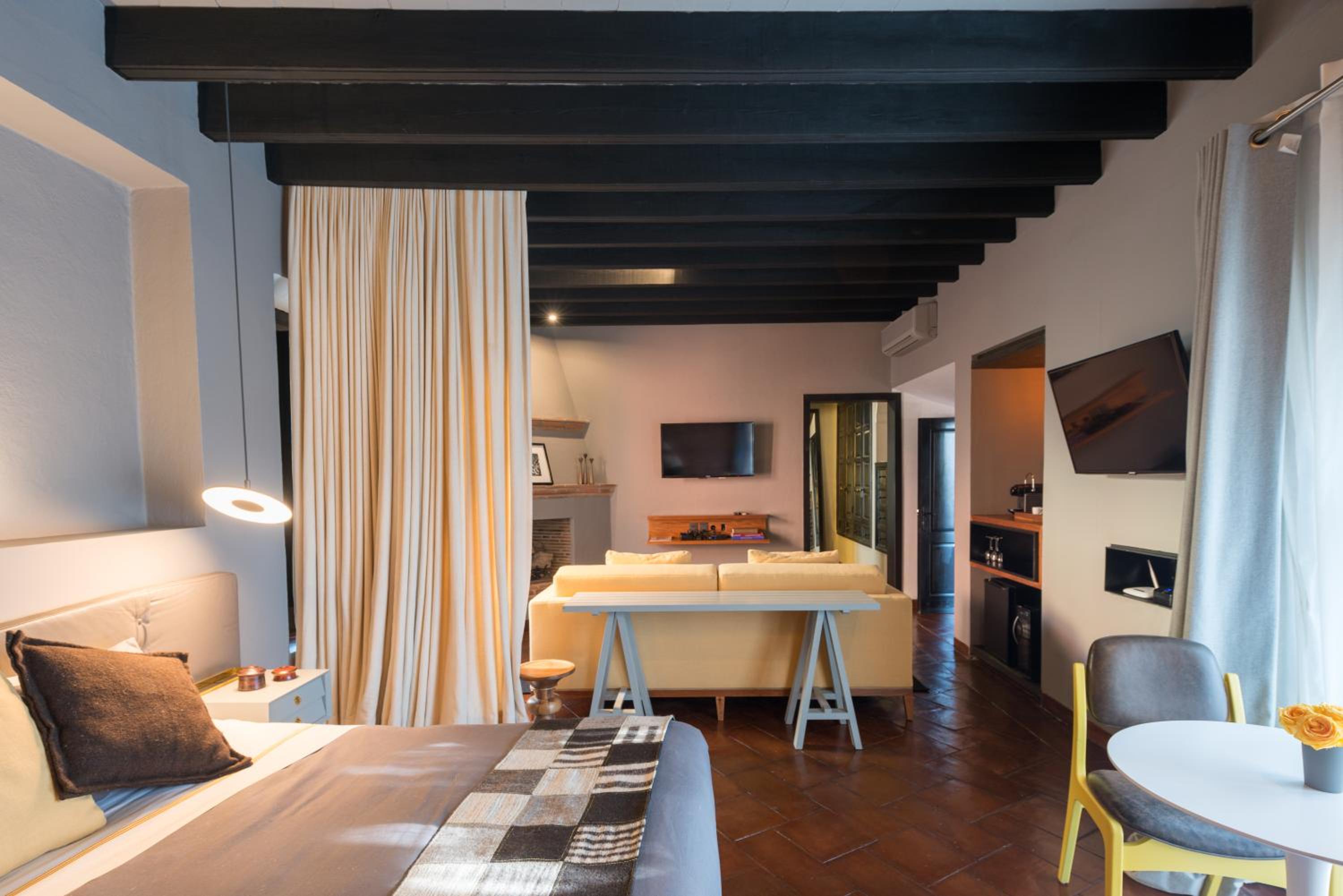 Hotel Dos Casas offers air-conditioned rooms and suites with rustic décor, stone walls, and modern amenities like a safety box and flat-screen TV. The elegant bathrooms come with free toiletries for a comfortable stay.