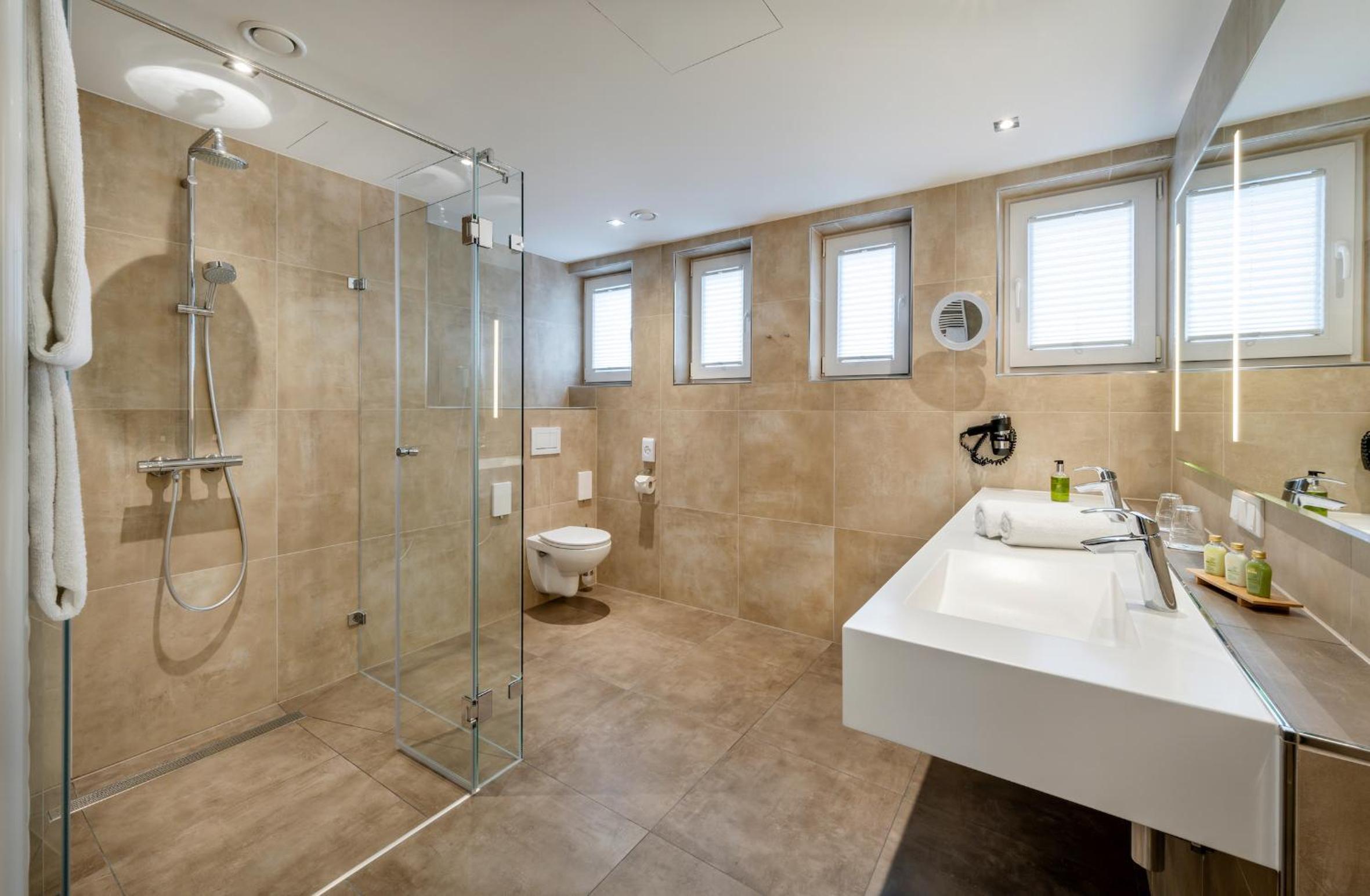 Enjoy air-conditioned, soundproof rooms with modern amenities like a flat-screen TV and private bathroom. Some rooms even boast a balcony with stunning views of the Alps.