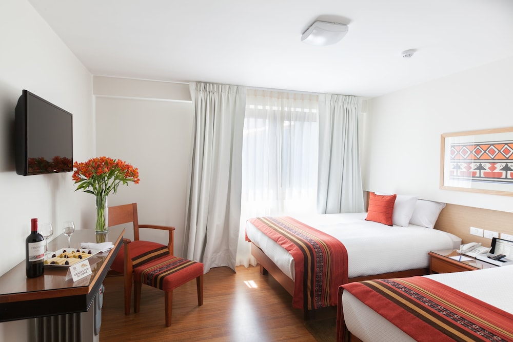 I’m currently here with a tour not because I will choose this hotel. Staff as is all Peru super friendly and willing to assist you. Peruvian loves tourists. The problem with hotel is needs a facelift asap. Walkways carpets are dirty with stains in all floors. Rooms size are ok but furniture is from 20 plus years old. The breakfast buffet one of the worst not even a proper toaster they have the small panini maker that cuts bread in 4 small squares. No even orange juice buy papaya. Fríen chicken wings for breakfast????