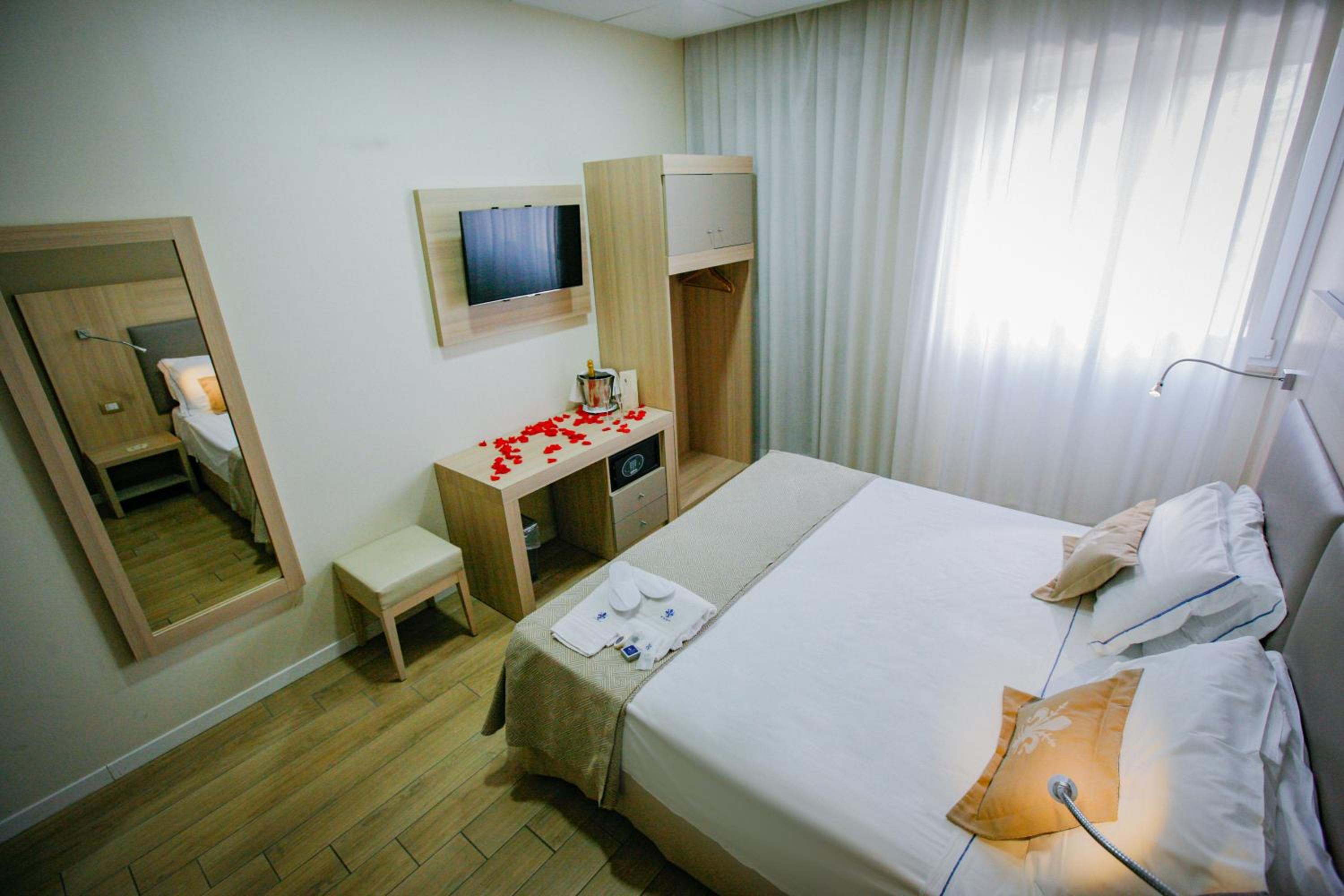 L’accoglienza è stata elegante e soprattutto complimenti alla ragazza disponibile e gentile vanto dell hotel la sua disponibilità e pazienza!