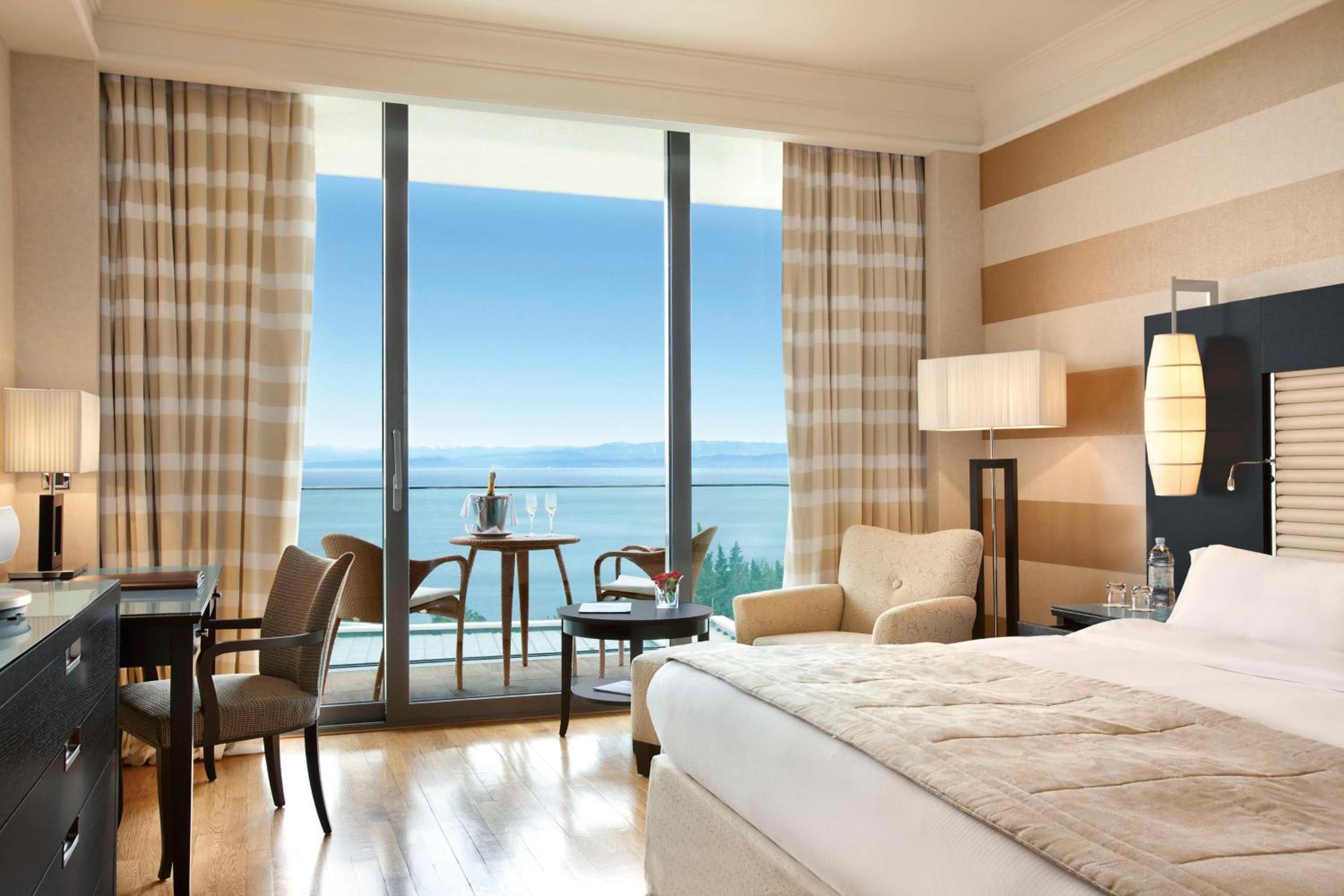The Kempinski Hotel Adriatic Istria Croatia offers elegantly furnished rooms with balconies overlooking the sea or countryside. Each room is equipped with modern amenities such as air conditioning, a minibar, and a laptop safe.