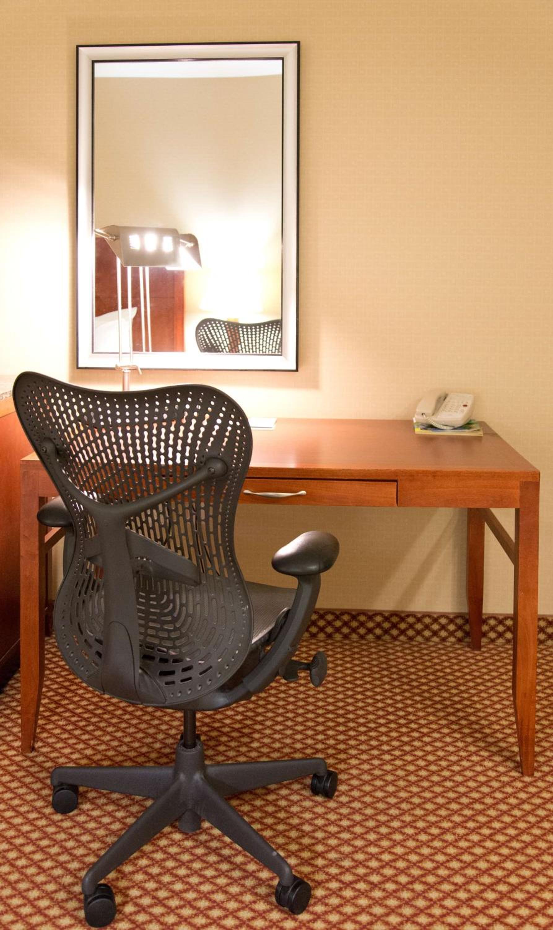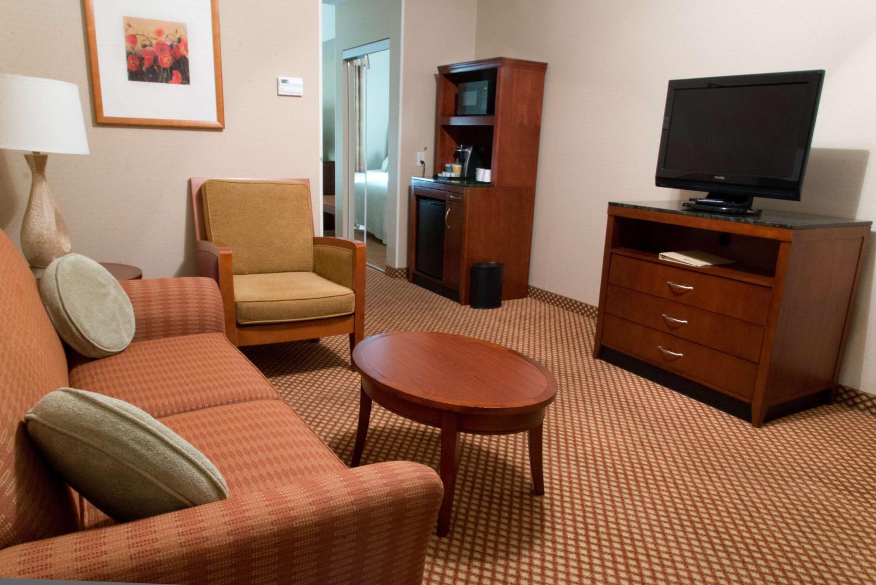 Each room at the hotel is equipped with a flat-panel LCD TV, coffee maker, microwave oven, and mini-refrigerator for your convenience. Stay productive with a work desk in every guestroom.