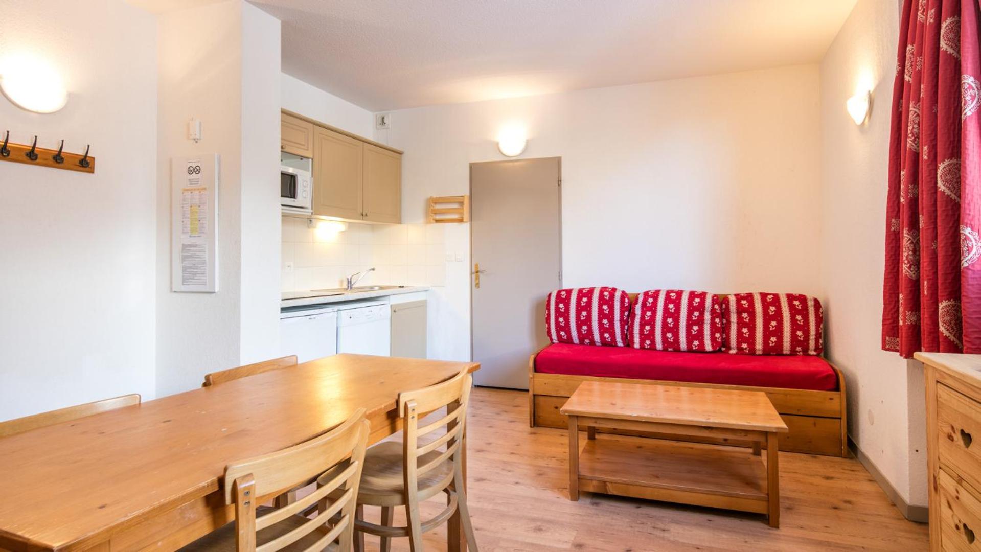 Great value in the heart of French Alps. Easy and quick arrangement, a spacious apartment, ok location just at the entrance of Vallorie and in the woods. The reception staff were exceptionally kind, helpful and friendly. You have free shuttle bus every 30min to the center of Vallorie and first gondola, it's just 4min ride away.