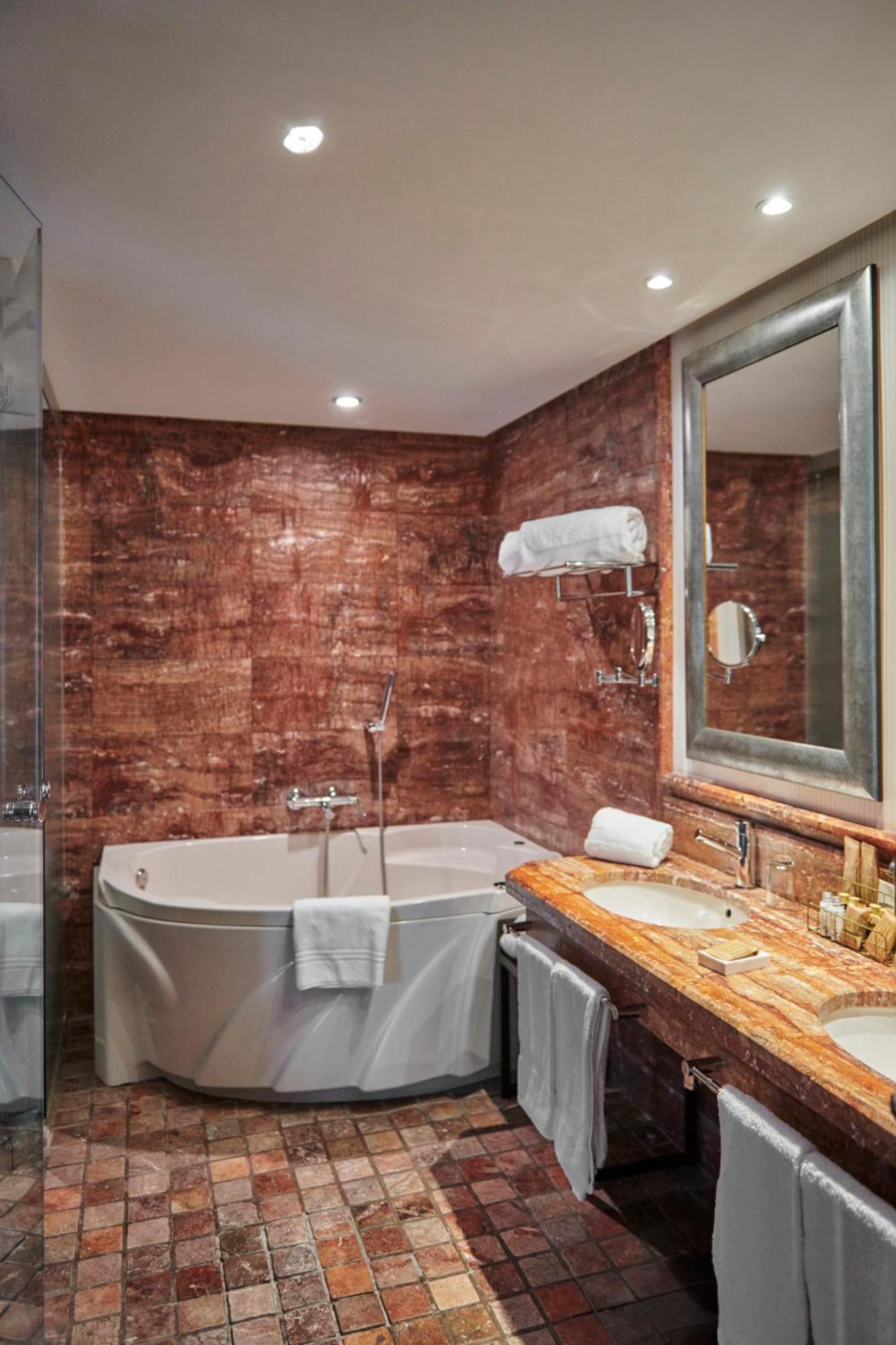 Experience elegance and comfort in our air-conditioned rooms with modern amenities such as satellite TV, minibar, and safe. The private bathrooms are equipped with a magnifying mirror and hairdryer for your convenience.