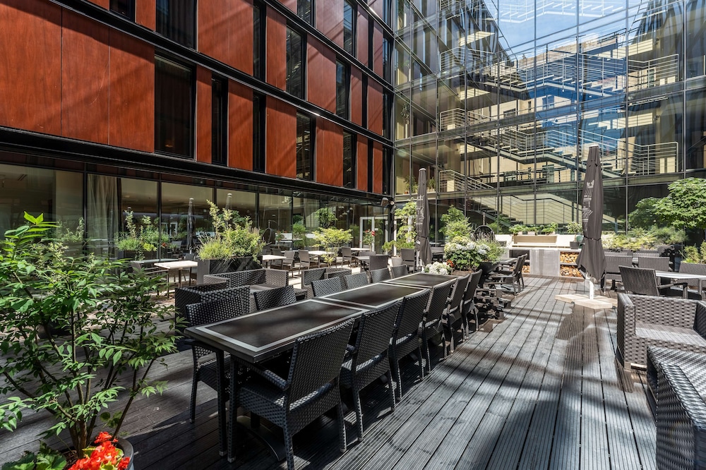 Hotel is located in very central part of Riga, within walking distances to old city, station, numerous bars and shops. Although located in art-nouveau style area, hotel looks to be modern steel and glass product.