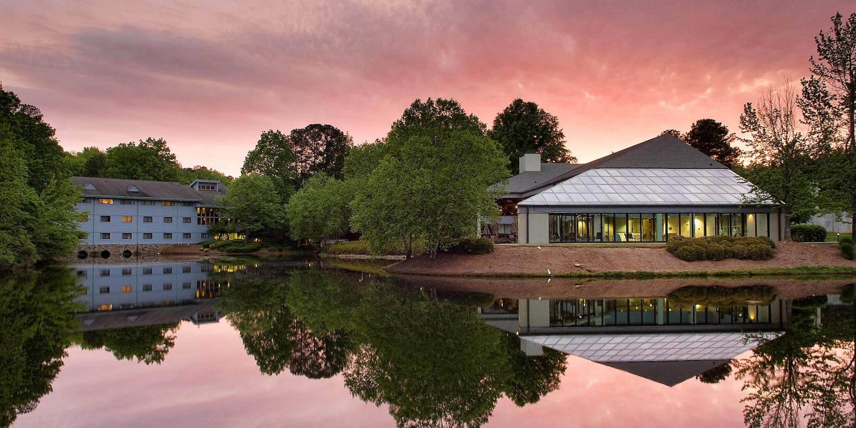 All of the staff were amazing!!! So eager to help, went out of their way to make sure we had what we needed and were taken care of! I was so impressed with their pleasant attitudes and helpfulness! The location is beautiful, set off in the woods like you’re at a summer camp almost.. it’s so nostalgic but modern at the same time. You would think you’re in the middle of nowhere bc you can’t even hear traffic, it’s so peaceful and private feeling. The rooms were top-notch, plenty of things to do.. even pool tables and foosball, volleyball and tennis courts (which we didn’t have a chance to use bc we only stayed one night).. the pond/lake is gorgeous! The pool is awesome, we were surprised that it actually had a deep end of 8 ft since most hotels only go to like 5 ft nowadays! It was a nice surprise.. plenty big enough for everyone to enjoy and I wish I could’ve seen it at night bc I’m sure it was beautiful. Top of the list though, that breakfast!! Pay the few extra dollars for everyone to enjoy the breakfast bc I promise you won’t be disappointed! I took pictures of the food, it was that awesome!!! They’ll cook you omelets, waffles, chocolate chip pancakes, French toast if you want - but they also have a HUGE Buffett of everything you can imagine and it’s all so good!!! I had like 4 plates just for me and tried my best not to waste anything! I’ve only left a couple of reviews in my life but I was so impressed with this place that I had to leave a review and let them know how much we appreciated it and let others know that this place is worth every dollar! If you’re planning on staying anywhere close to Atlanta or the outskirts, pick this hotel and you won’t be disappointed! We went to the nascar race in Atlanta and drove the 30 minutes it took to get to the hotel from the track.. it was a great choice!