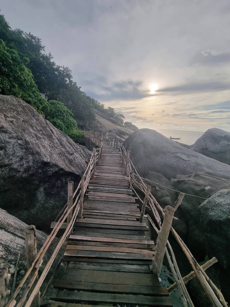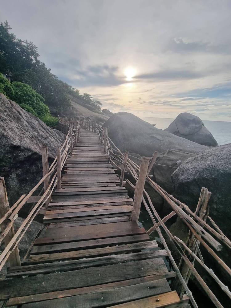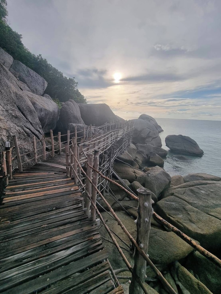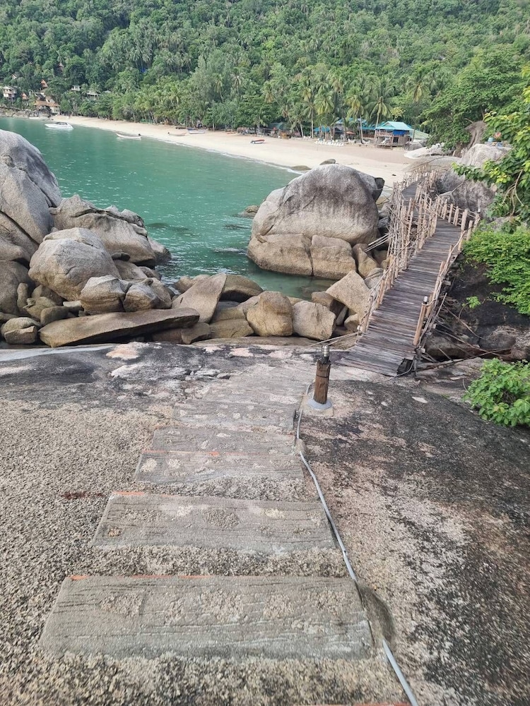 Located in haad Yuan, it's one of the most beautiful beaches on koh phangan. Lovely rooms, pool was amazing. Close to guys bar and Eden for some party nights. Only downside is the trek up the hill, it was 88 steps to my room which was brutal at times. But worth it to be up amongst the trees and birds