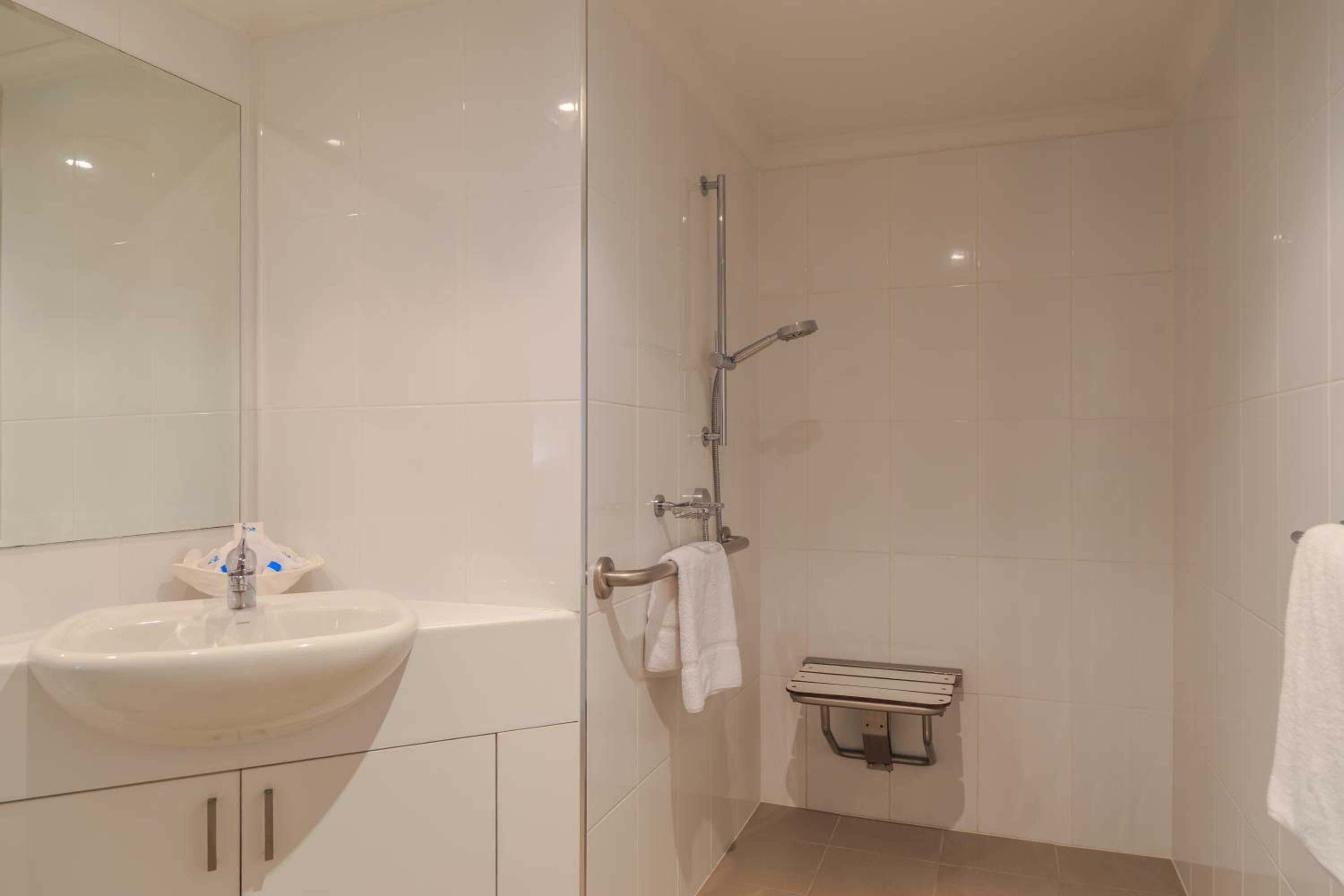 As I am a wheelchair user, we chose to stay here because we were attracted by the claims to be accessible-friendly, with “accessible parking”, “accessible reception” and “accessible room”. We asked for a ground floor room. The room is adapted. I would not, however, call it accessible. The parking is underground, with no elevator and a very steep slope up to the ground level. The reception is up yet another, similar slope (and from my chair I was unable to see the reception staff unless they were standing up). The room is on this level, but everything else - swimming pool, barbecue patio, laundry facilities - is downstairs, with absolutely no access for a wheelchair user. The downstairs area itself is not disabled friendly - access to the sunbeds being via a stepping stone over part of the pool, and the sunbeds being on a raised platform. The owner was quite dismissive of the idea that a residence boasting of its access should property ensure that the disabled person has access to all (or at least most) of the facilities, and not just the room.
