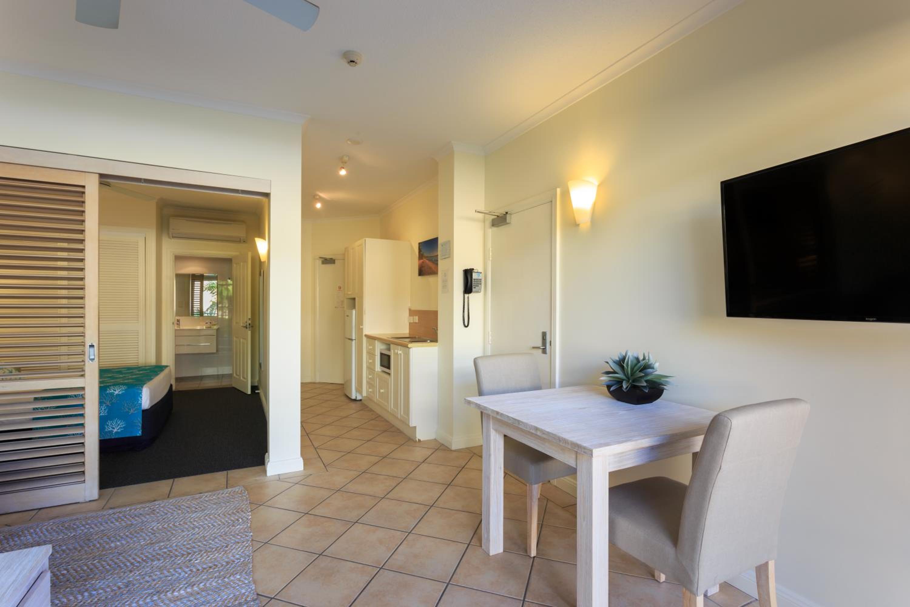 Room was very clean. Staff very friendly and helpful. Macrossan House was right in the main street - easy access to everything. Walk to both beaches, walk to marina and cruises. Absolutely wonderful and beautiful place to stay. Would highly recommend and would definitely book again!