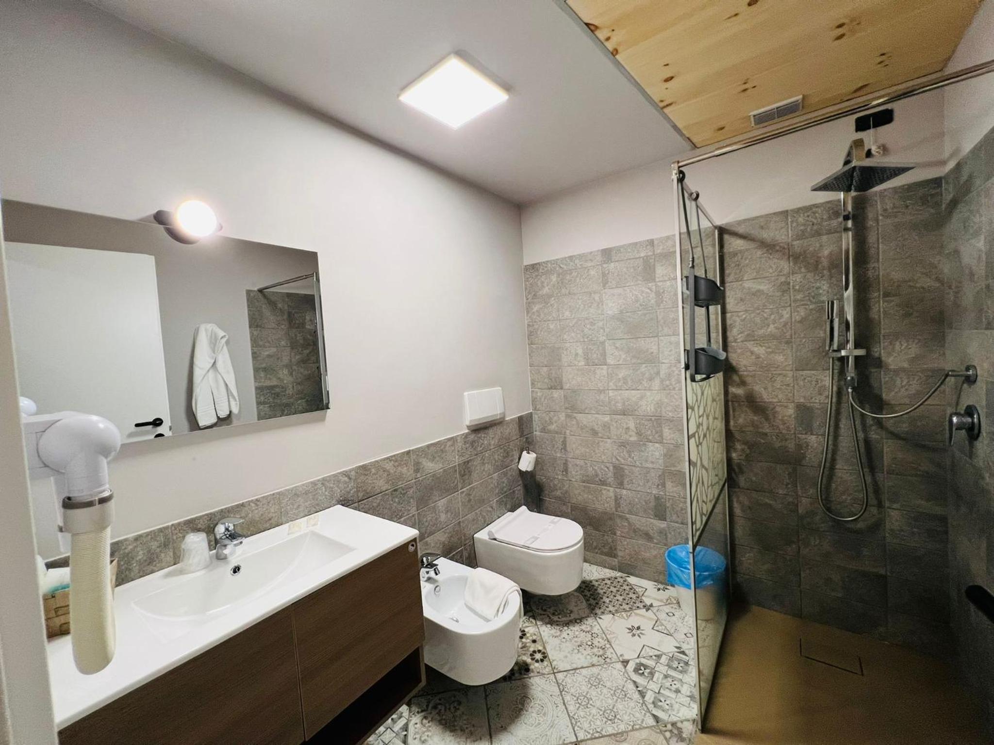 Camere pulite e accoglienti. Bagno con bella doccia.
