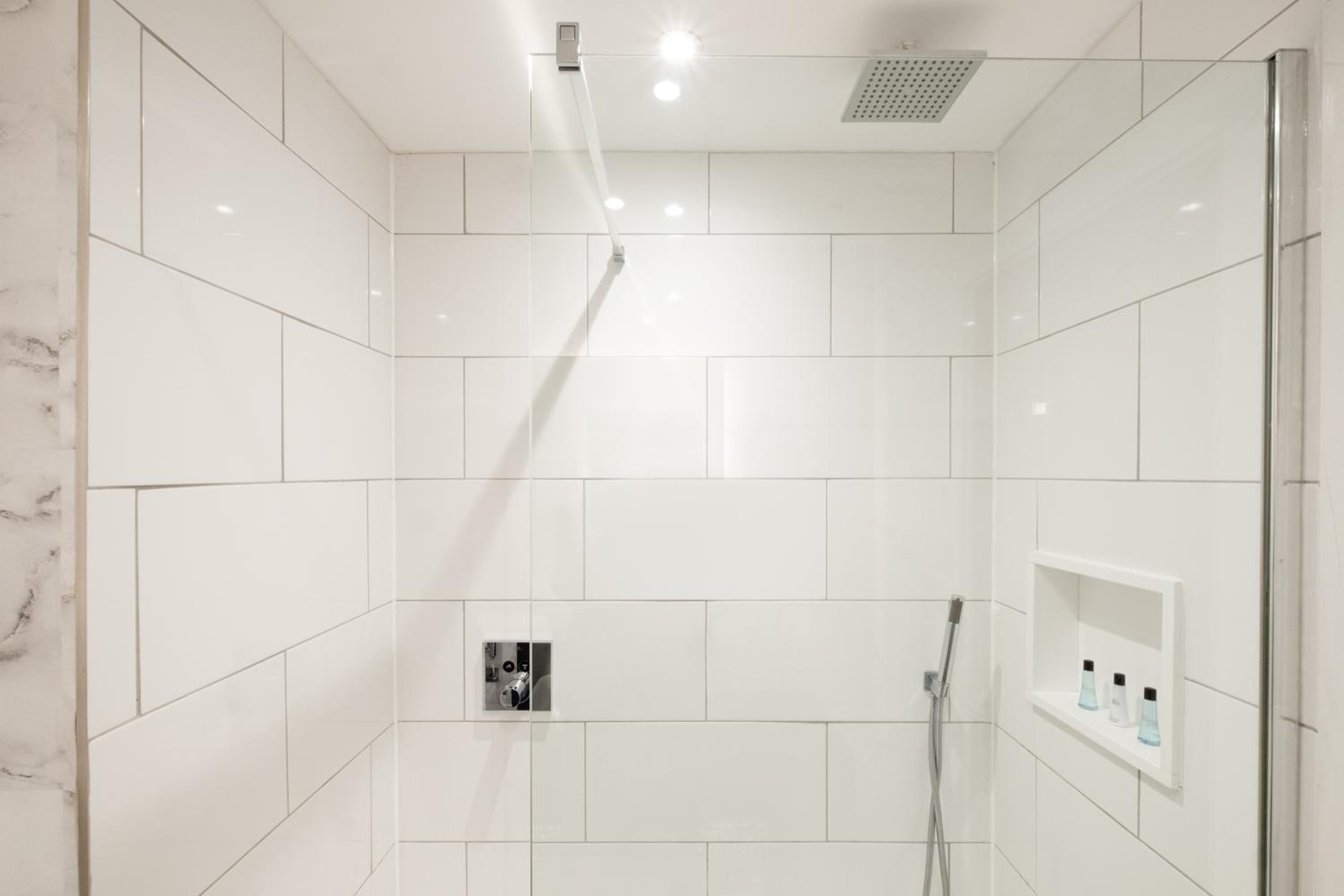 The shower seemed to have not been cleaned.
