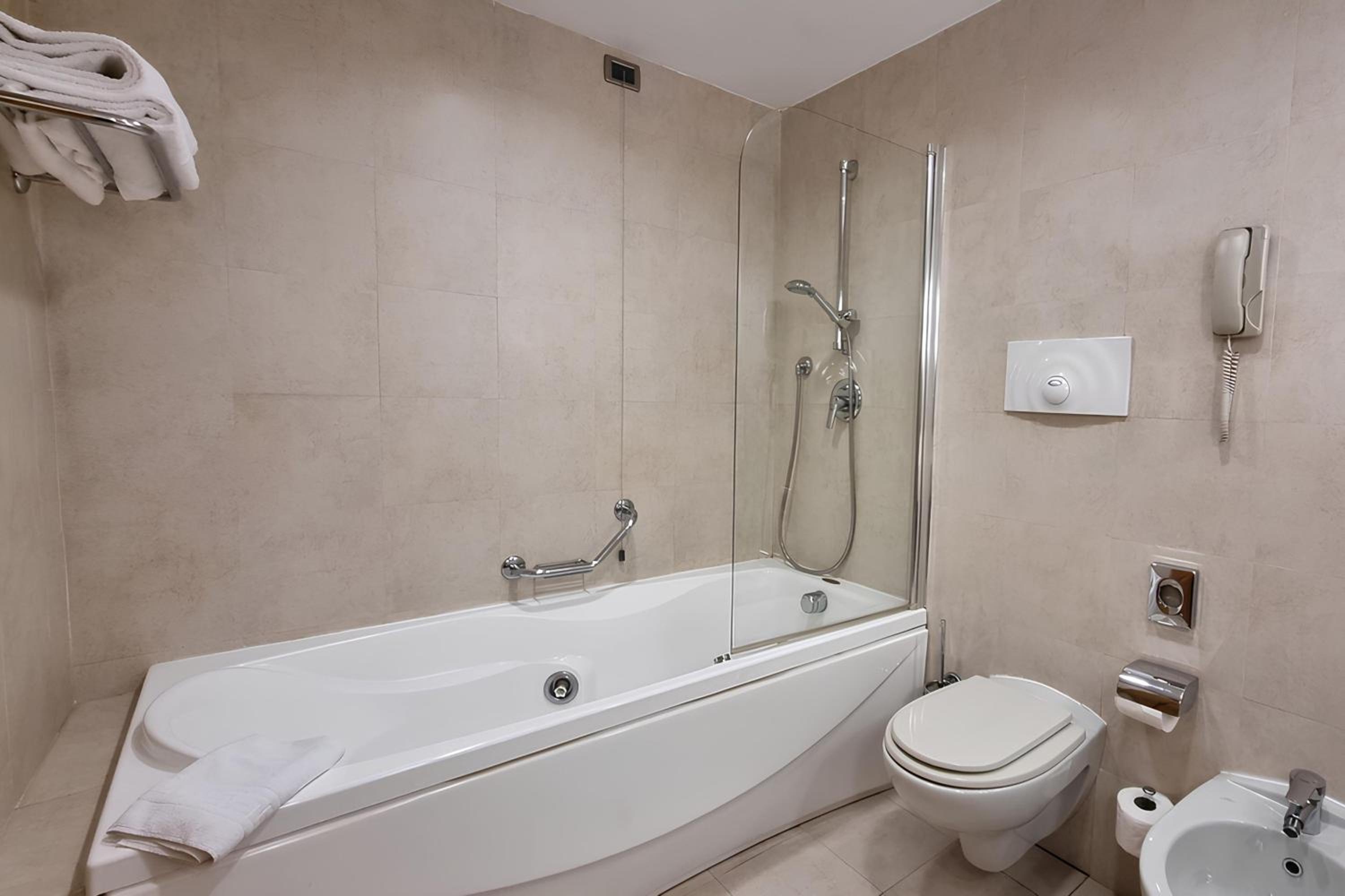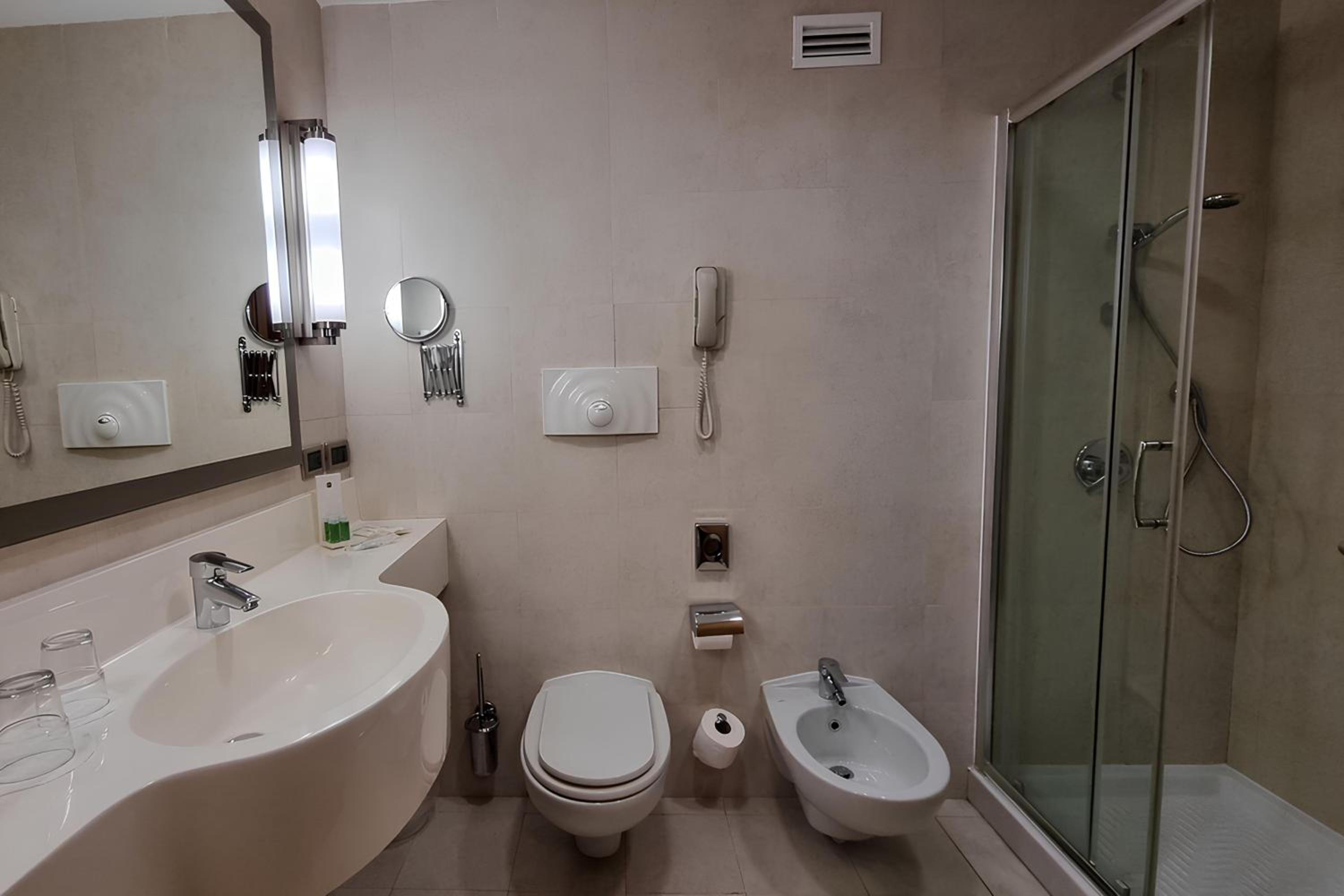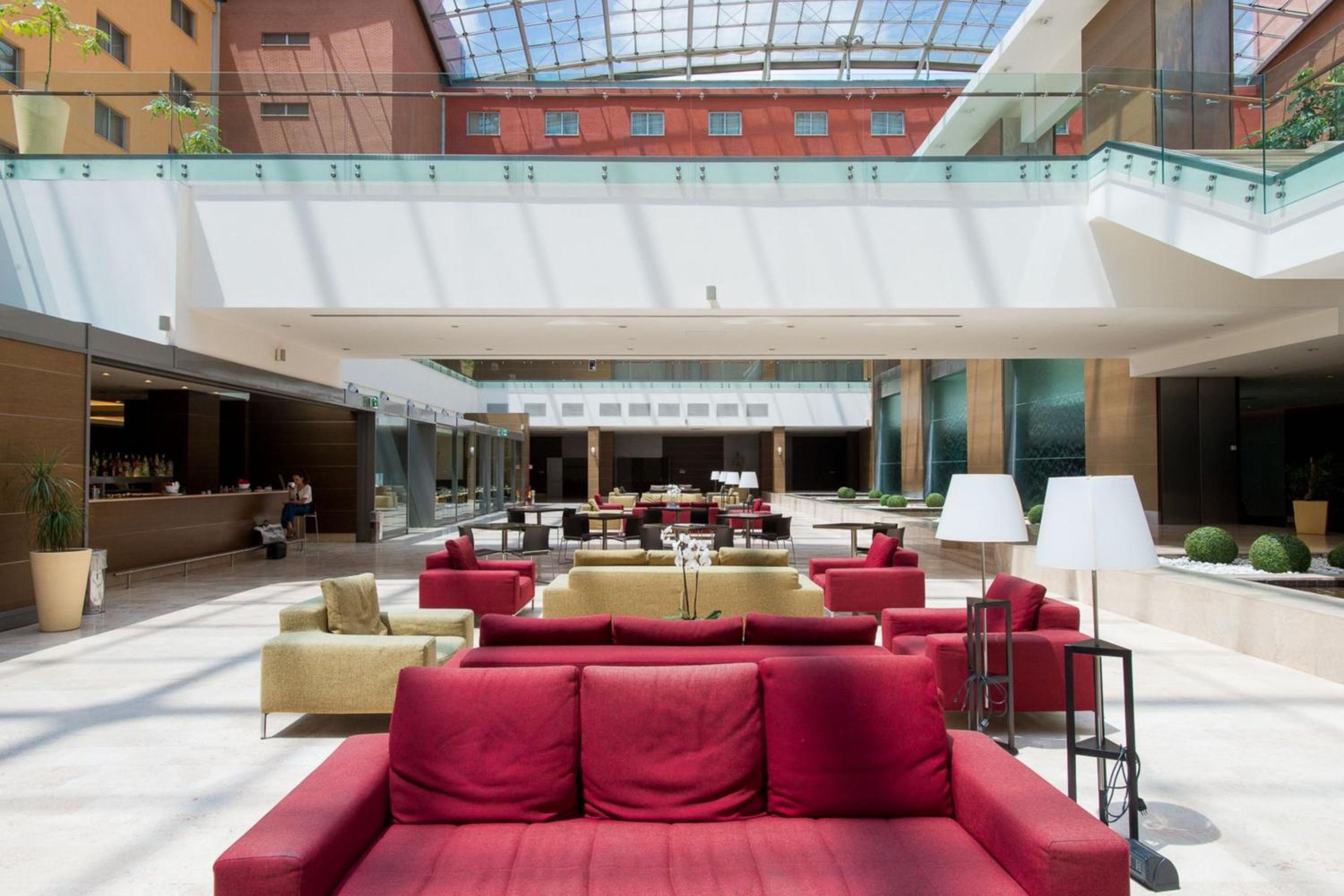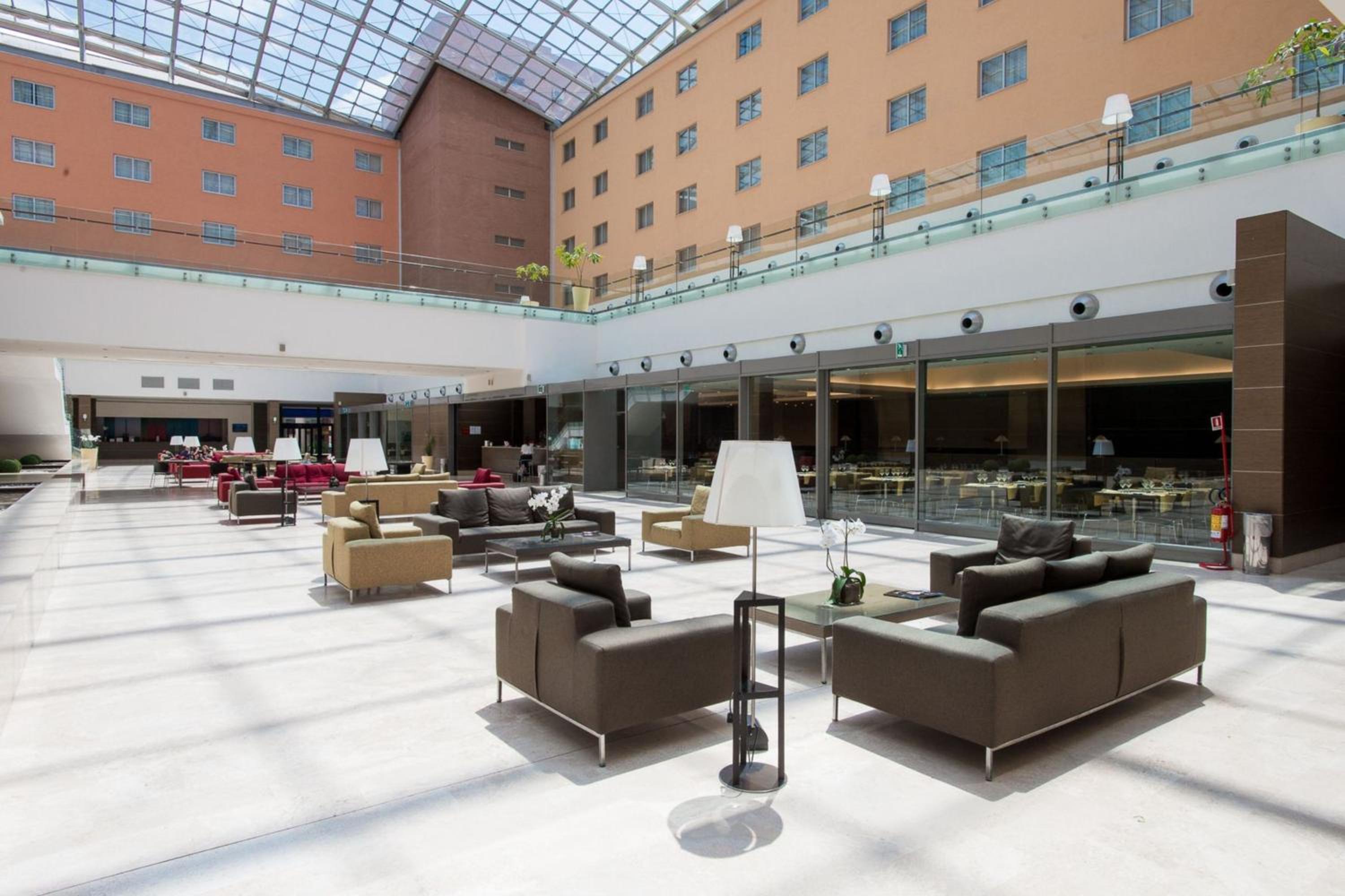 Plaza Caserta, with its stunning glass dome, offers spacious rooms in warm tones equipped with modern amenities like free WiFi, flat screen TV, and a mini fridge. Guests can relax in the large rooms that feature a comfortable seating area and a well-equipped bathroom.