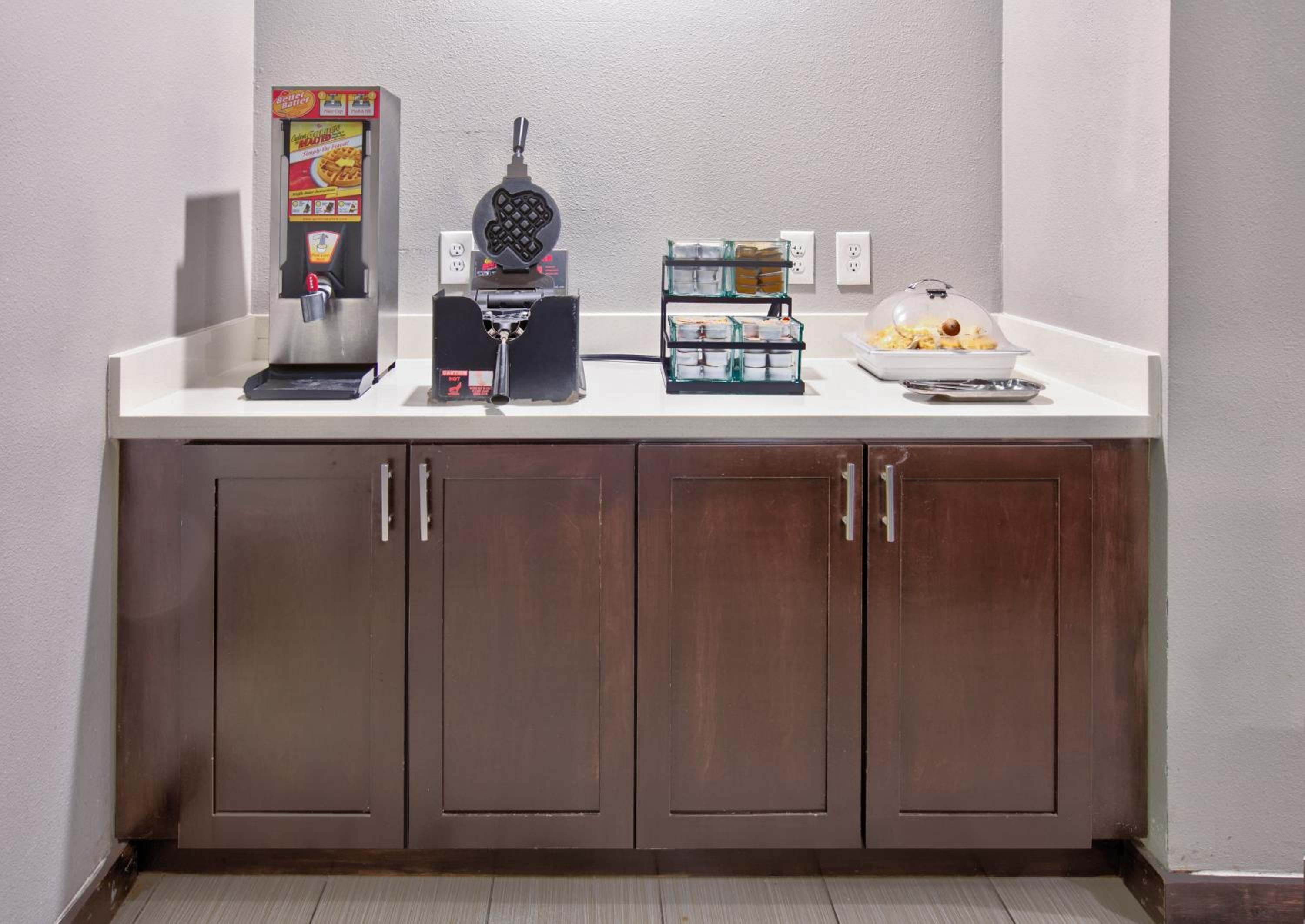 As I stated before, we were very pleased with the overall experience and hotel amenities. We did set our room to cooler at night, but it seemed like the QQ room and living room/kitchen were much cooler than the King bedroom. It's nice to have 2 pillows per person, but they were so thin that we borrowed our kids' extra pillows, so we weren't so flat. The beds were good, but a little firmer than we're used to at home. The breakfast selection was good, but I was surprised to only see one type of eggs, cheese omelet. My husband likes eggs but not with cheese. There was also no bacon, biscuits, or gravy. Everything was good that we ate though. The waffles were excellent. The breakfast area was nice.