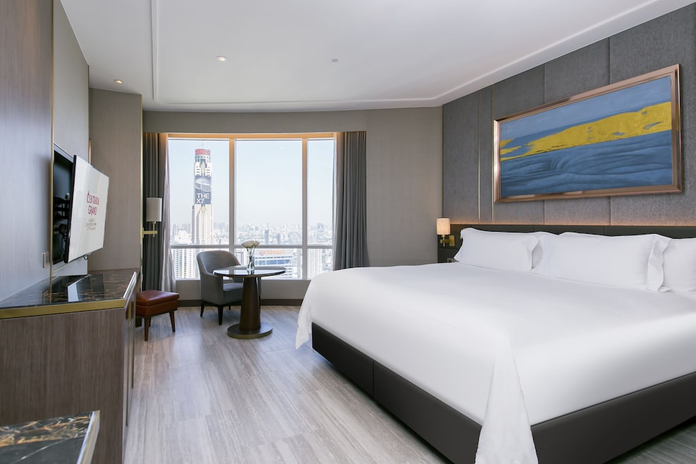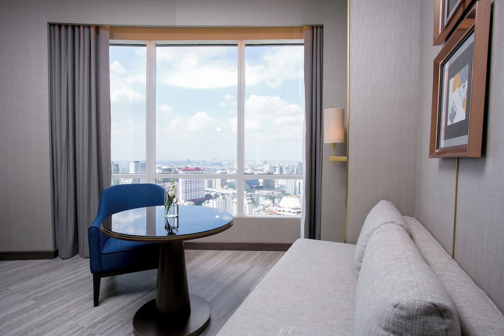 Location excellent, connected to CentralWorld on the L7 and Lobby at L23. Up to L42 is normal room and higher is club FL. Welcome drink on L54 not much view. Bad side, they are using low quality toilet tissue and no electronic bidet. Walking to Big-C or Train are quite a distance due to mall too big. Big-C thru H&M will be fastest. Breakfast limited of choices, and they don't change much everyday (no Thai curry only Arab veg curry). Some hotels(Terminal 21) offer daily changes to selected items. Overall, price high but quality provided not up to value. Only Plus point location.