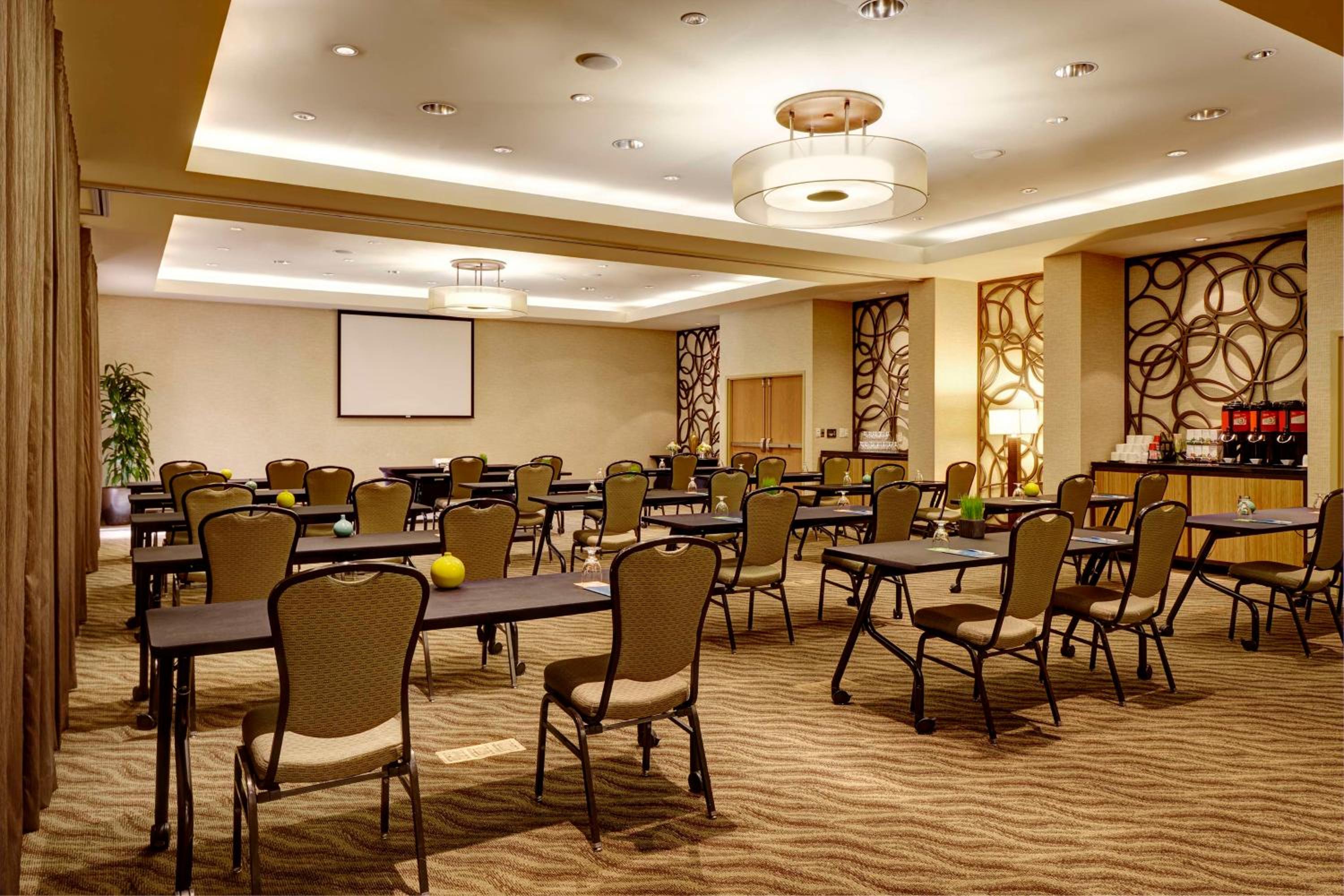 Indulge in a delicious hot breakfast with a variety of options, and dine at the H Bar restaurant for comforting meals. Relax on the furnished terrace, by the fire pit, or stay active in the fitness and business centers.