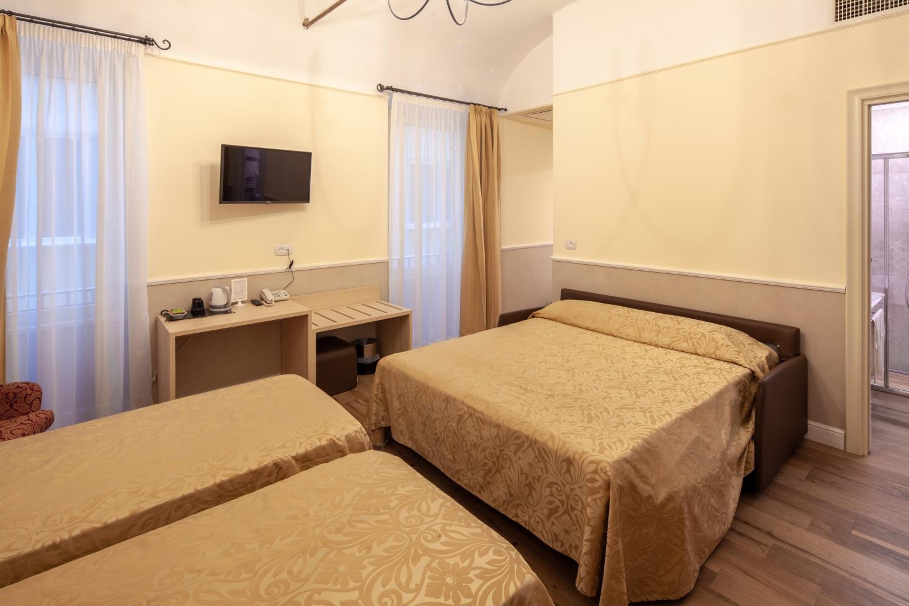 Hotel Flavia offers stylish air-conditioned rooms with Wi-Fi access, ensuring a comfortable and connected stay for guests. The rooms boast LCD TVs with satellite and pay-per-view channels, providing entertainment options for relaxation after a day of exploring the city.