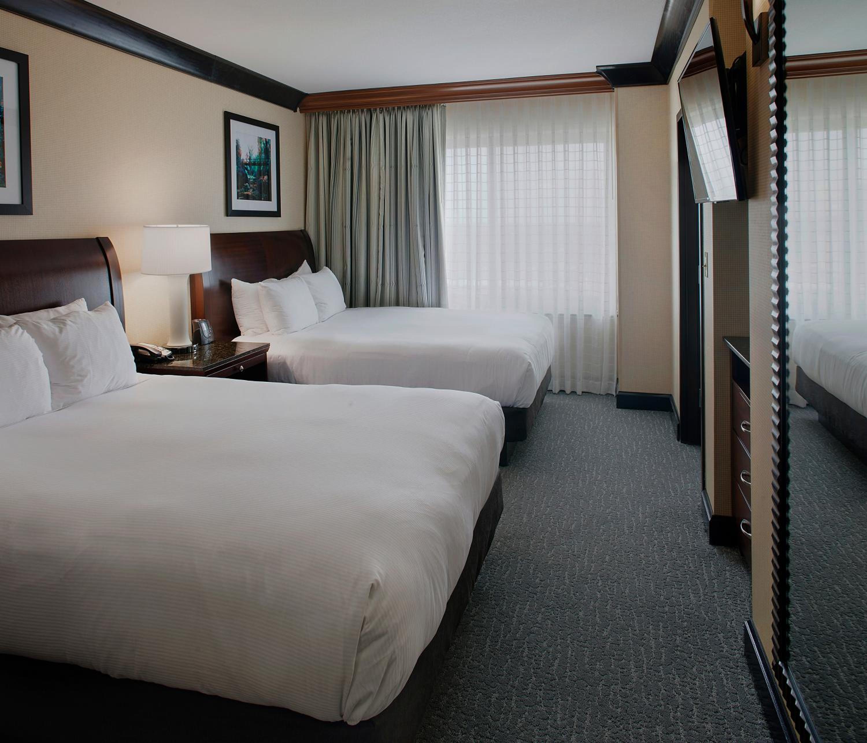 Indulge in the comfort of private bedrooms and separate living rooms, adorned with warm colors and modern furnishings. Each suite boasts an iPod docking station, 2 flat-screen TVs, a microwave, and a fridge for your convenience.