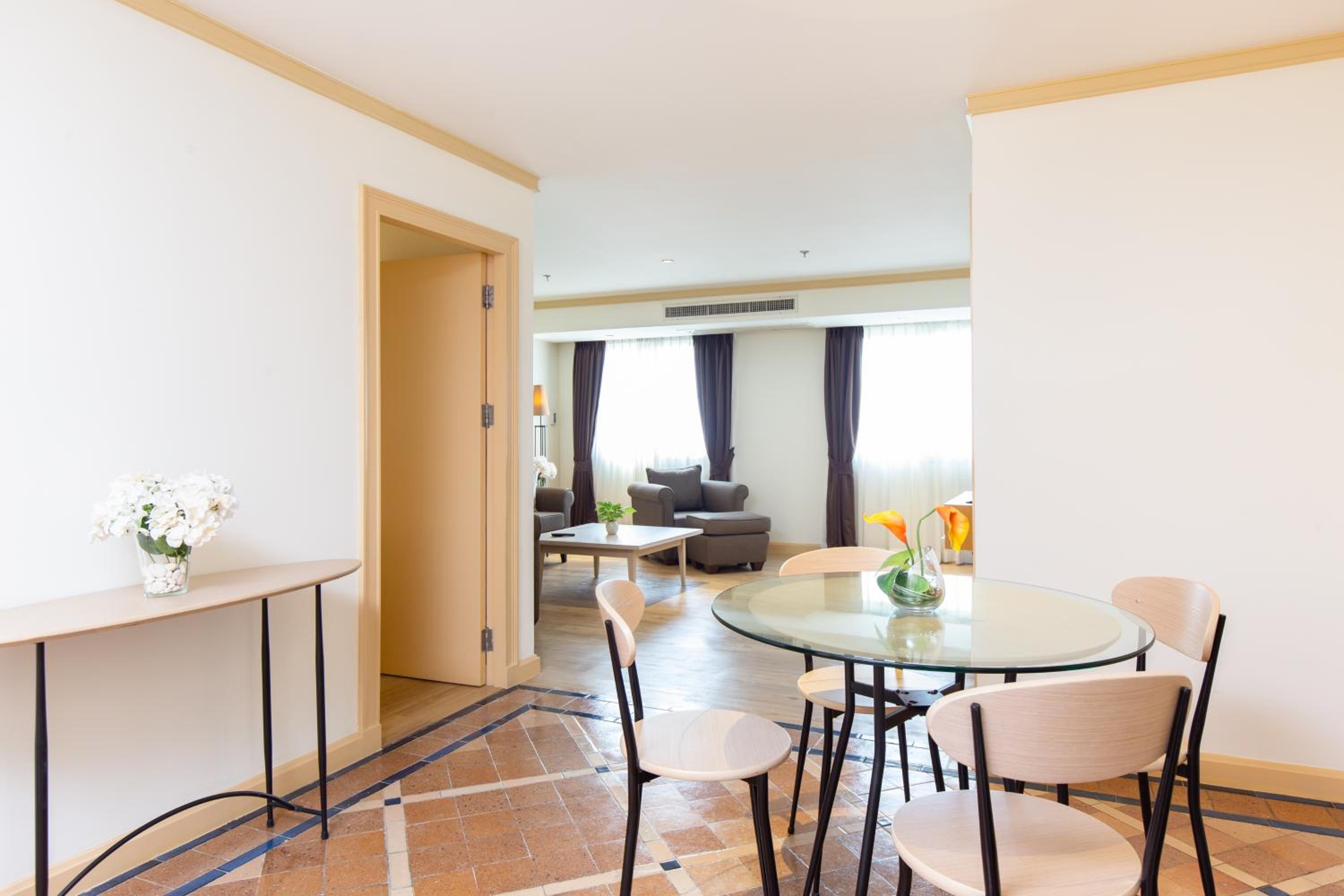 Experience the breathtaking views of the Chao Phraya River and Bangkok's skyline at Riverfront Bangkok. Indulge in our well-equipped rooms featuring kitchenettes, TV with cable channels, DVD player, microwave, and refrigerator. Stay active at our fitness centre or dine at our on-site restaurant. Conveniently situated just 5 km away from Sathorn and Silom Road, and a short 45-minute drive from Suvarnabhumi Airport, our hotel is the perfect choice for your stay in Bangkok. Book now and make unforgettable memories at Riverfront Bangkok.