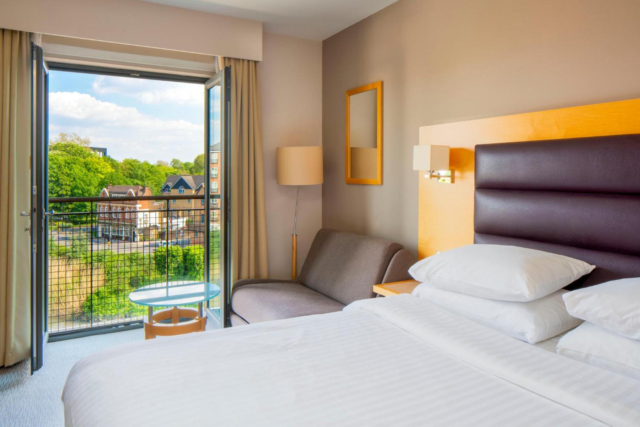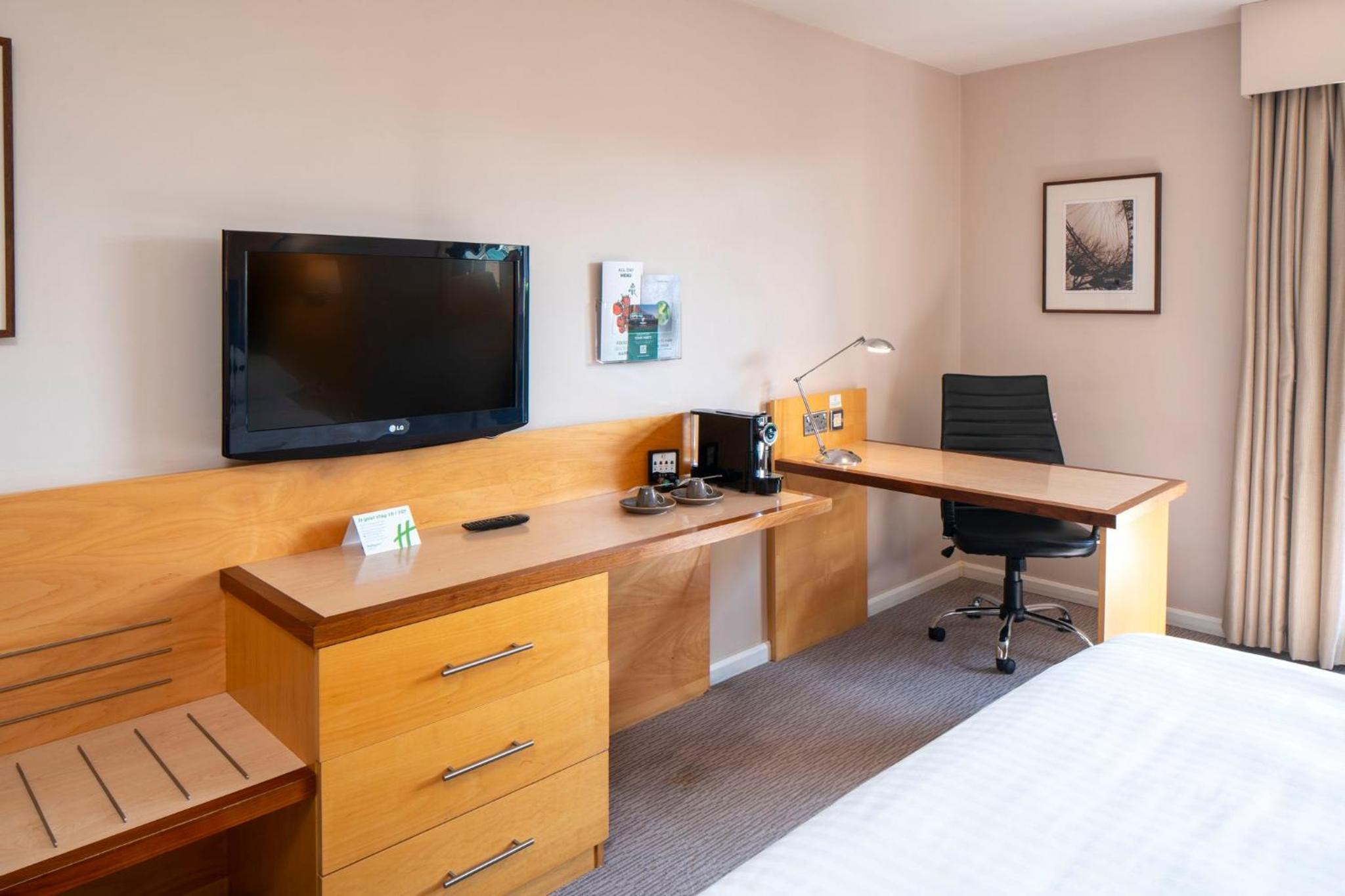 The bright bedrooms at Holiday Inn London Brentford Lock are designed for your comfort and convenience. Each room is equipped with air conditioning, a TV with satellite channels, and on-demand movies. Some rooms even boast a balcony overlooking Brentford Lock, providing a serene retreat after a day of exploration.