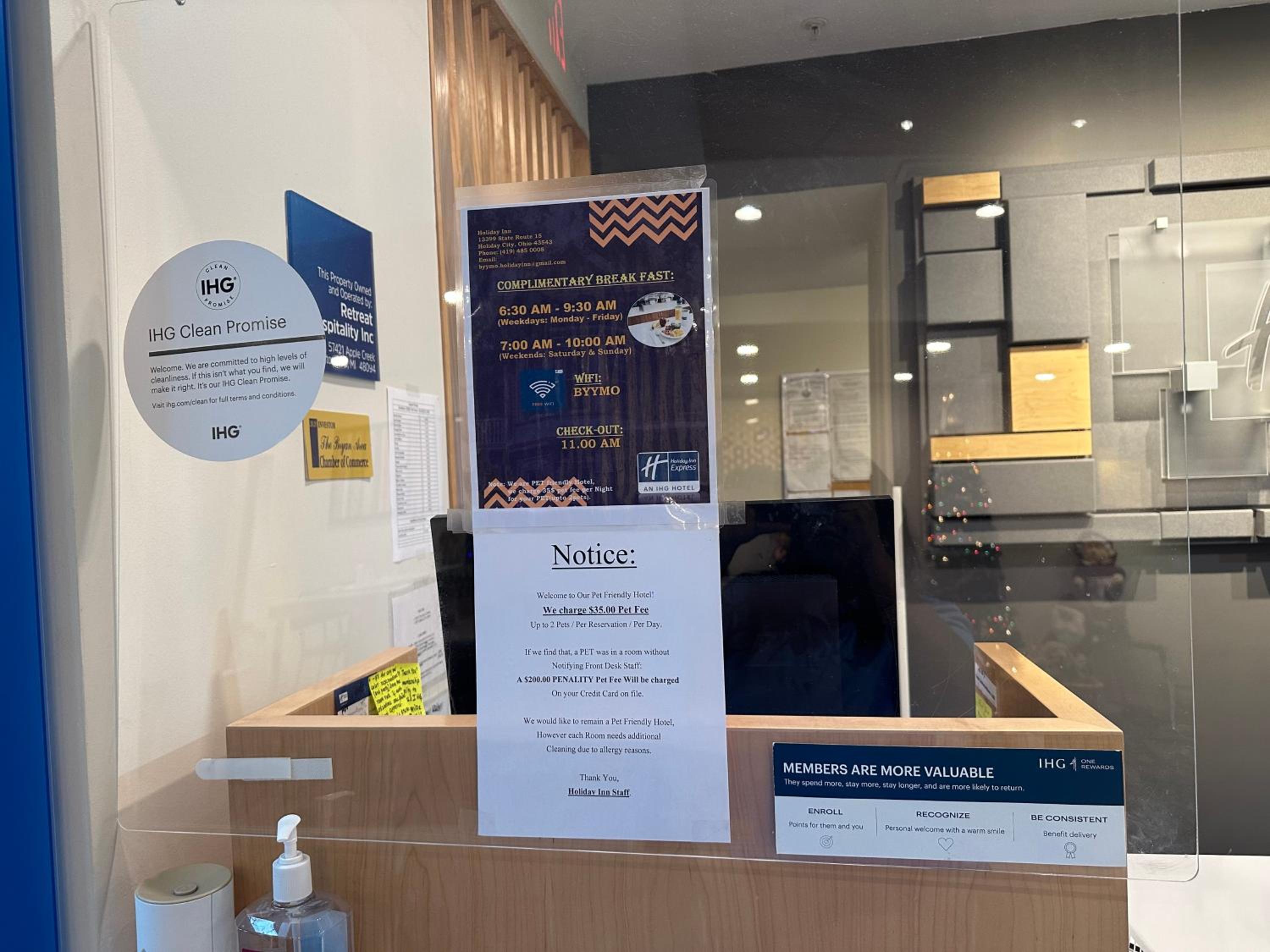The pet fee was OUTRAGEOUS. We stayed one night, which costed us around $95, but the pet fee was $75, almost the same as the room. Makes no sense.