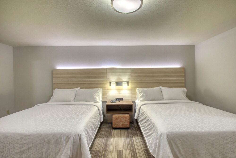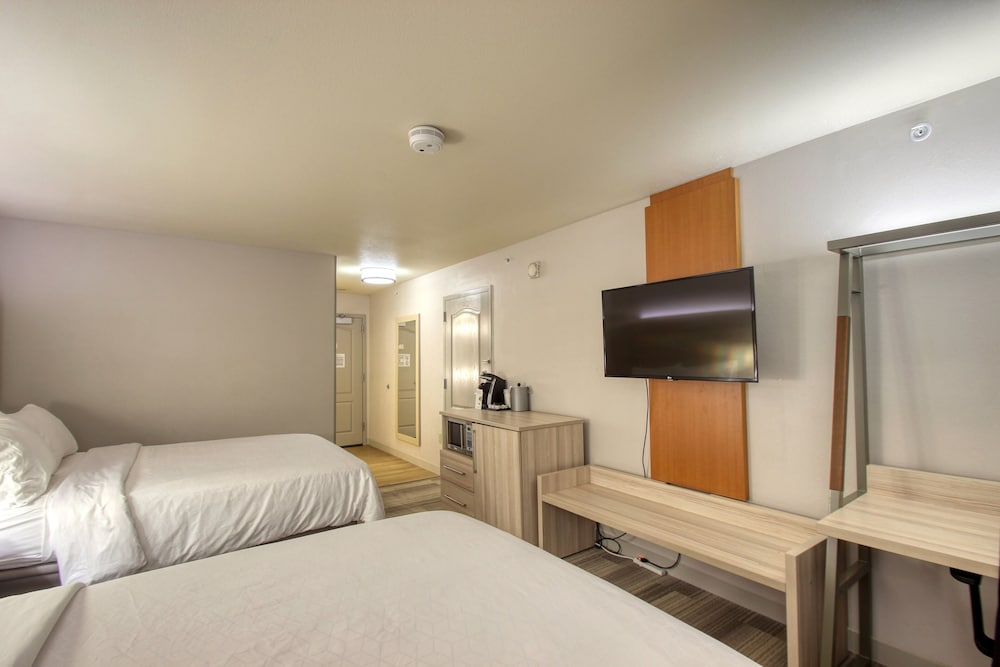 Modern Comforts: Unwind in one of the 115 rooms equipped with free Wi-Fi, flat-screen TVs, and plush bedding.